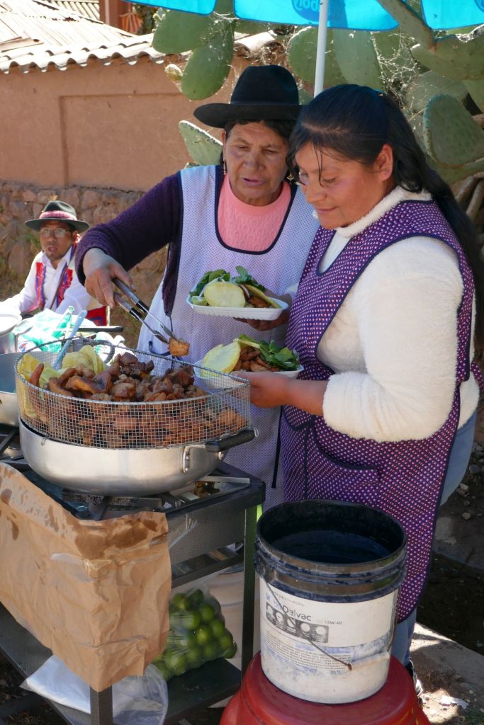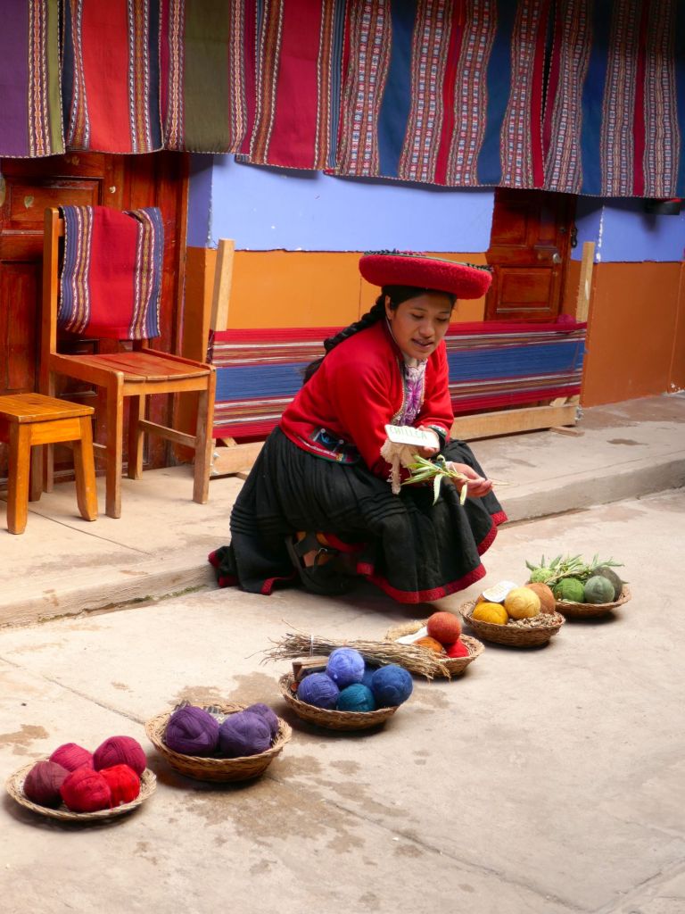 Our next stop was Chinchero Village at a textile weaving co-op where they prepared lunch for us and demonstrated the textile dyeing and weaving processes. The women of the co-op all wore black skirts which represents Pachamama.