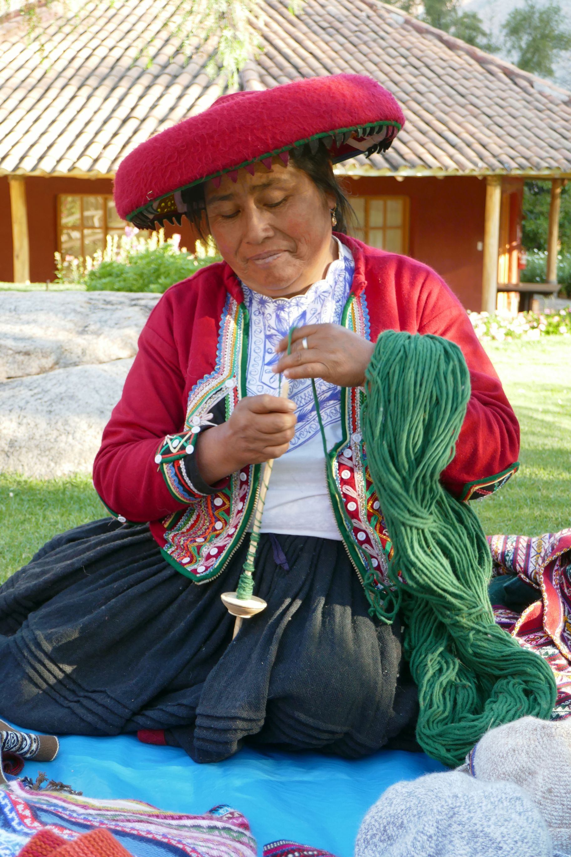 A woman from the area came to the hotel grounds to sell her handicrafts. Here, she is spinning wool the old fashioned way.