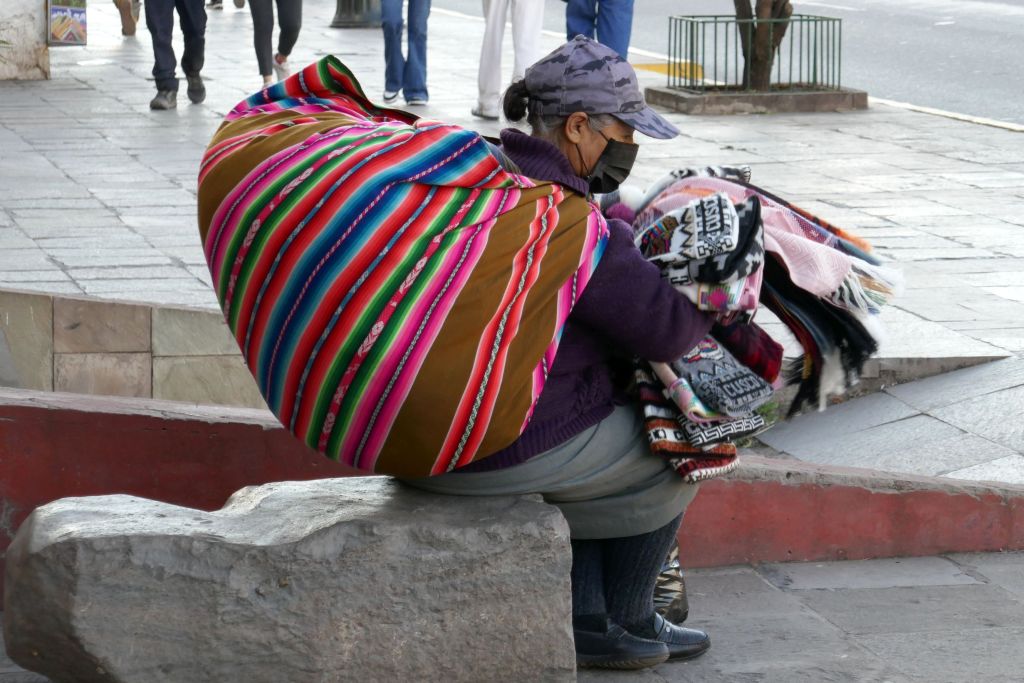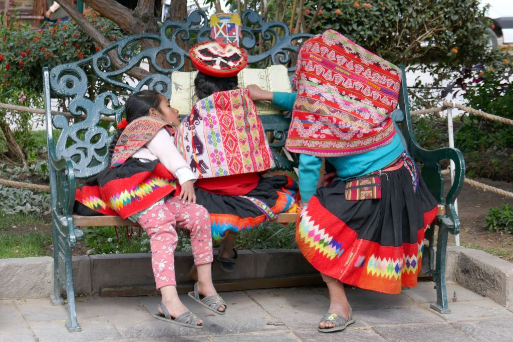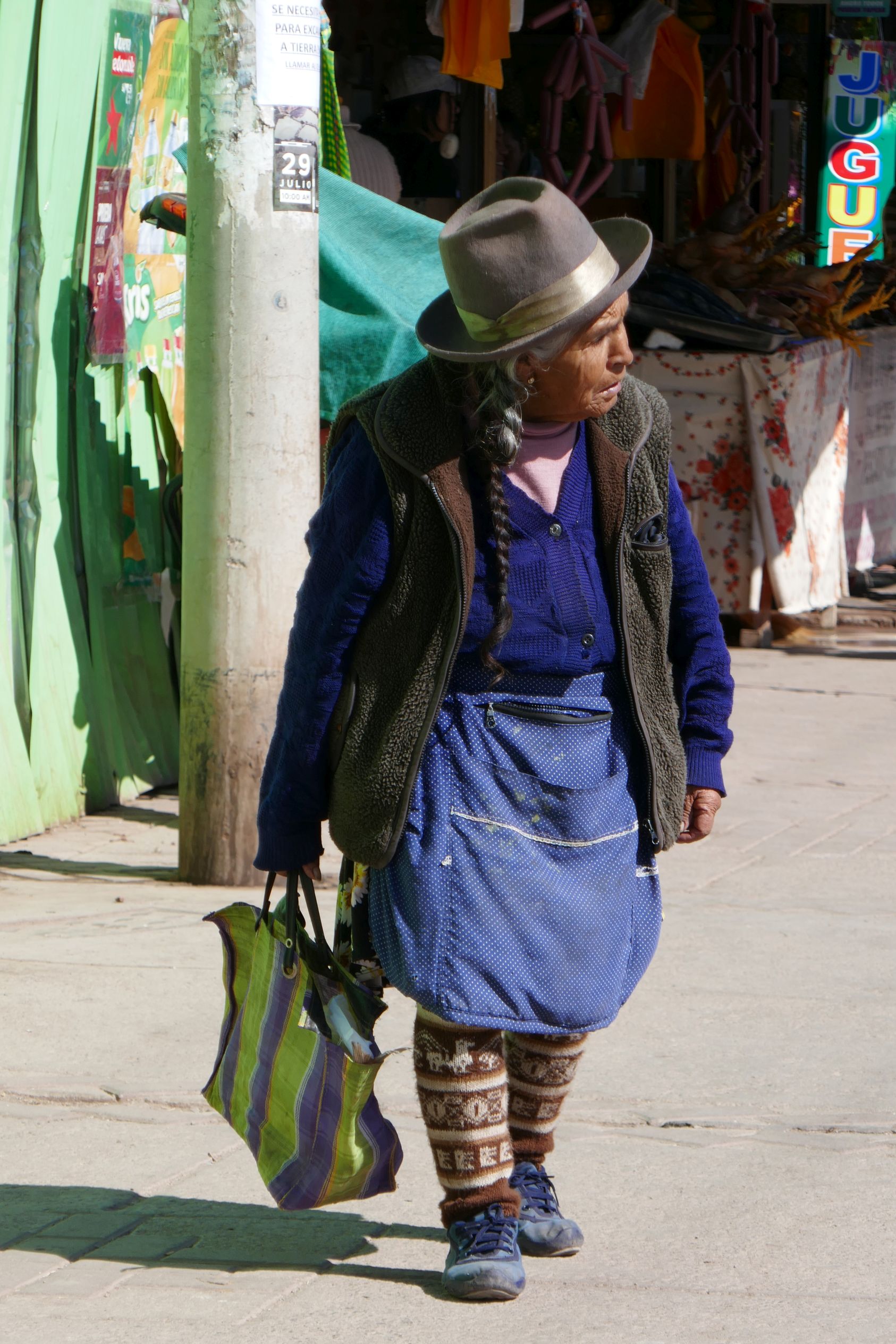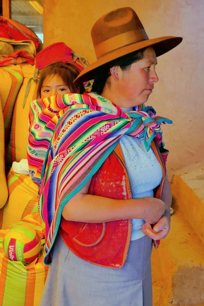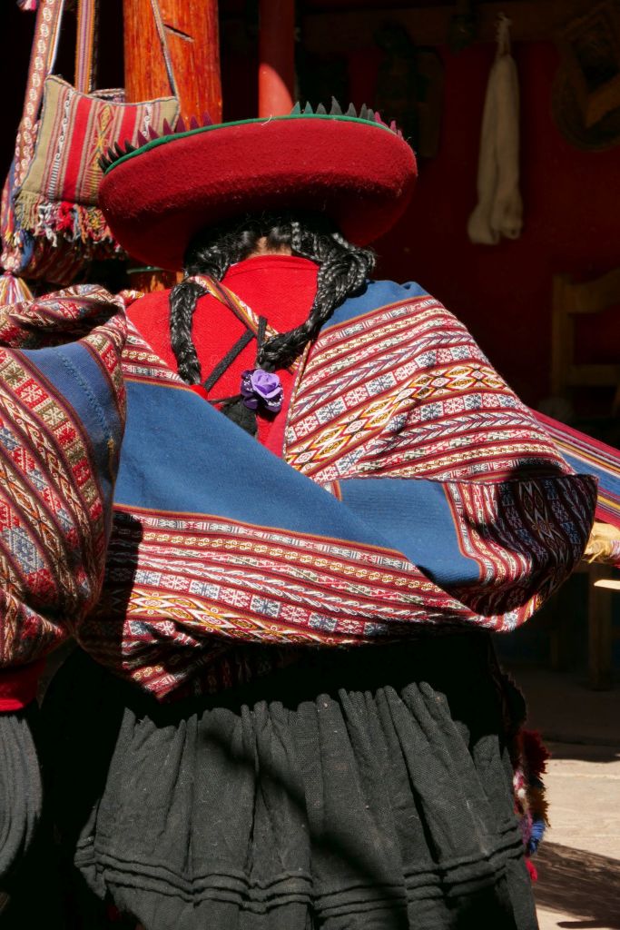 Notice her brown hat as well as the white and black hats worn by the women above? The color indicates the class and status of each woman and where they are from. This woman’s brown hat indicates she is from the Andes.