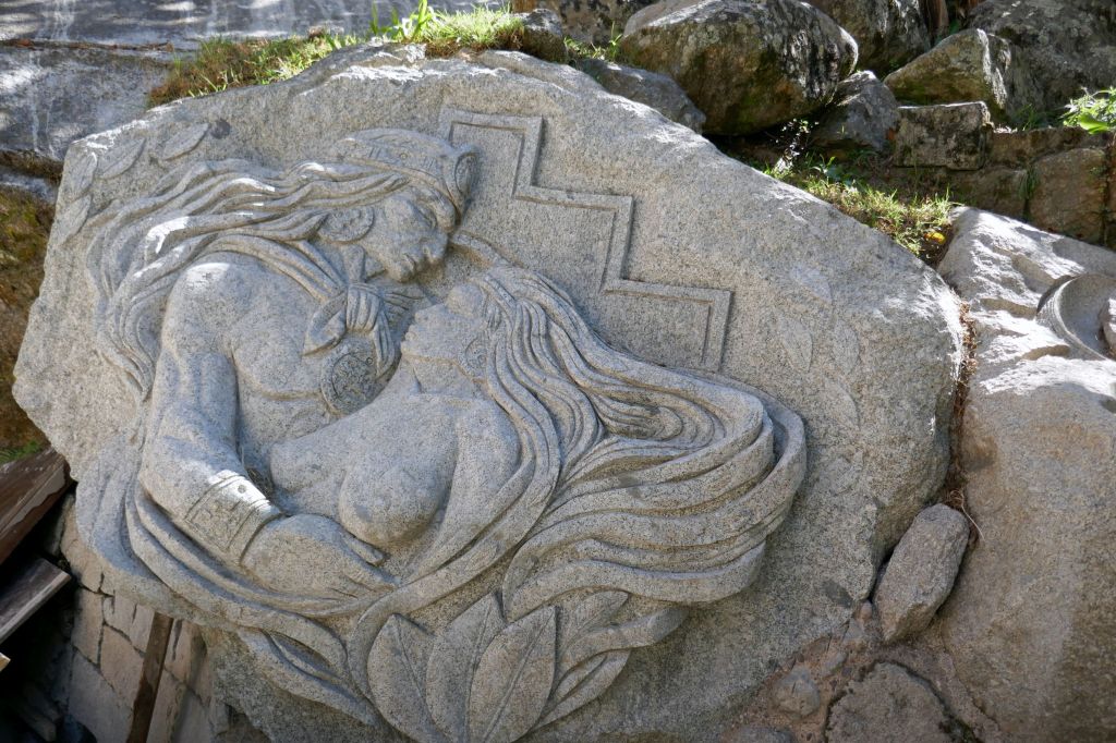 I continued to climb higher above the ruins and was greeted by this elaborately carved warning sign on what NOT to do.
