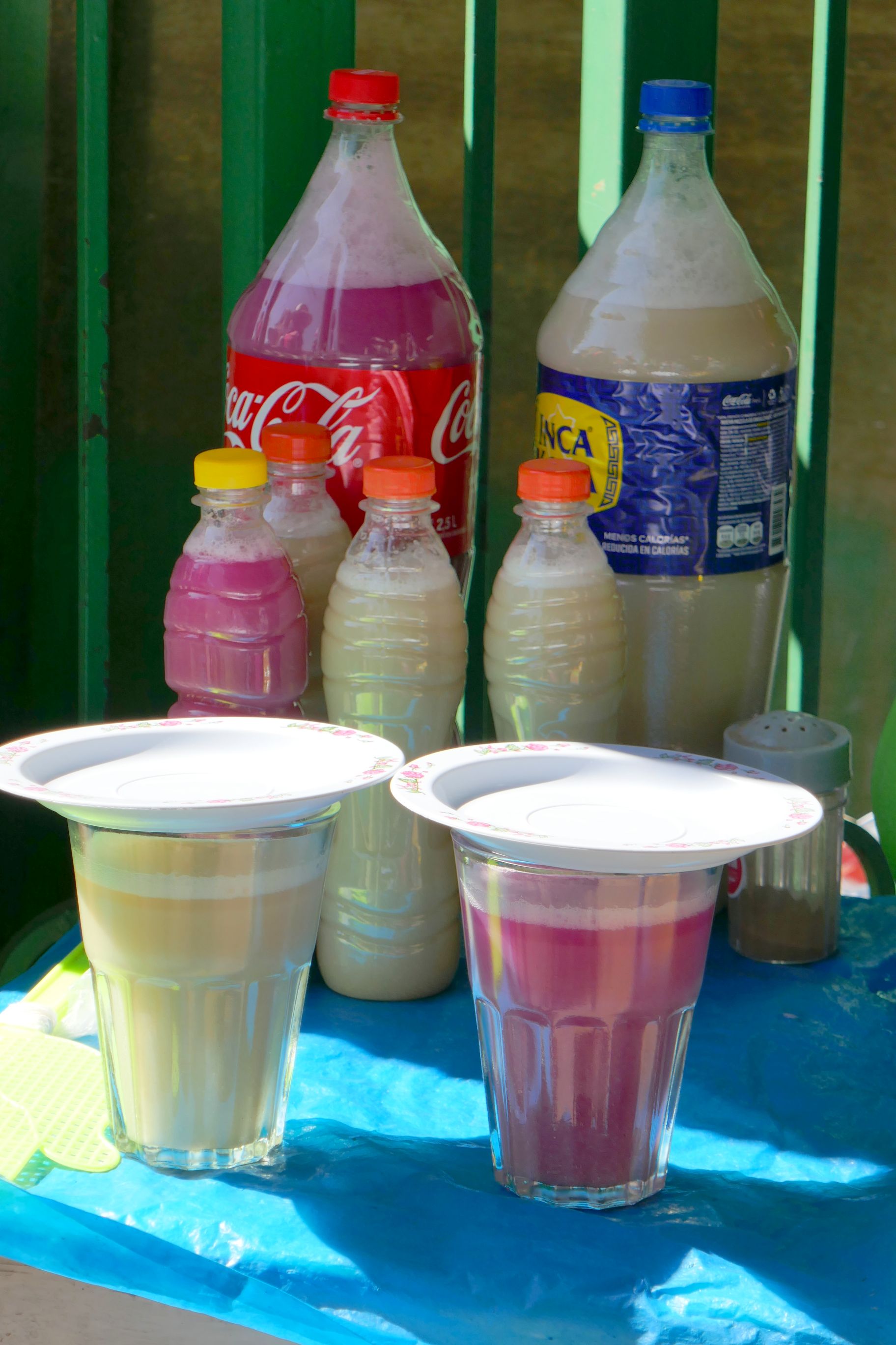 How about warm homemade corn beer? That large Coca Cola bottle of plain beer will cost you about 50 cents. Double it for strawberry.