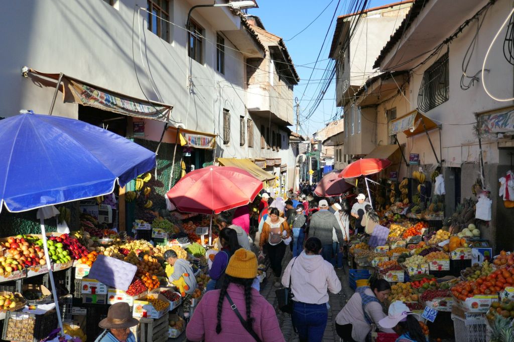 We still had much of the afternoon and evening ahead of us, so Raul, our tour leader, offered to take our group to Mercado San Pedro. Bruce and I were the only takers, so the three of us hopped on a local bus to visit Cusco’s largest market.