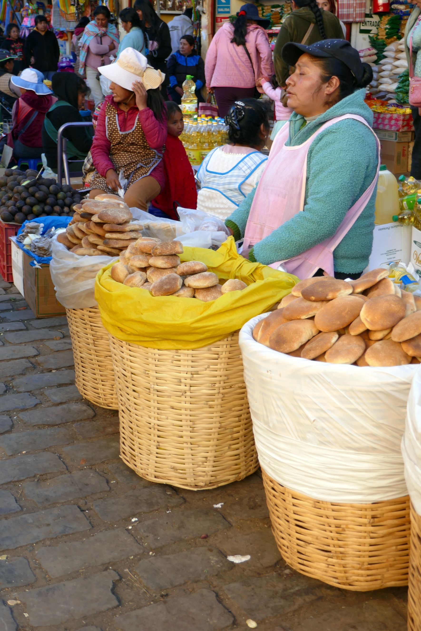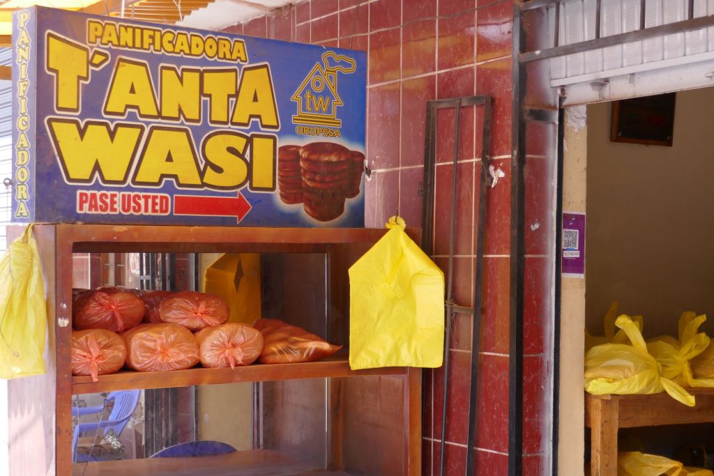 After hiking around the site and learning about the history from Raul (an amazing fountain of knowledge!), we visited the small town of Oropesa, known for making a special bread called pan chuta. The huge wheel-shaped loaves, made with wheat, eggs, flour, lard, and sugar (and other ingredients, depending on the baker), are traditionally offered as a gift to the host when visiting a home in the Cusco area. If you want to know which shops have fresh bread available for purchase, just look for a bright yellow bag tied to a stick out front. The town has 90 bread ovens in use, so chances are you will score on a loaf.