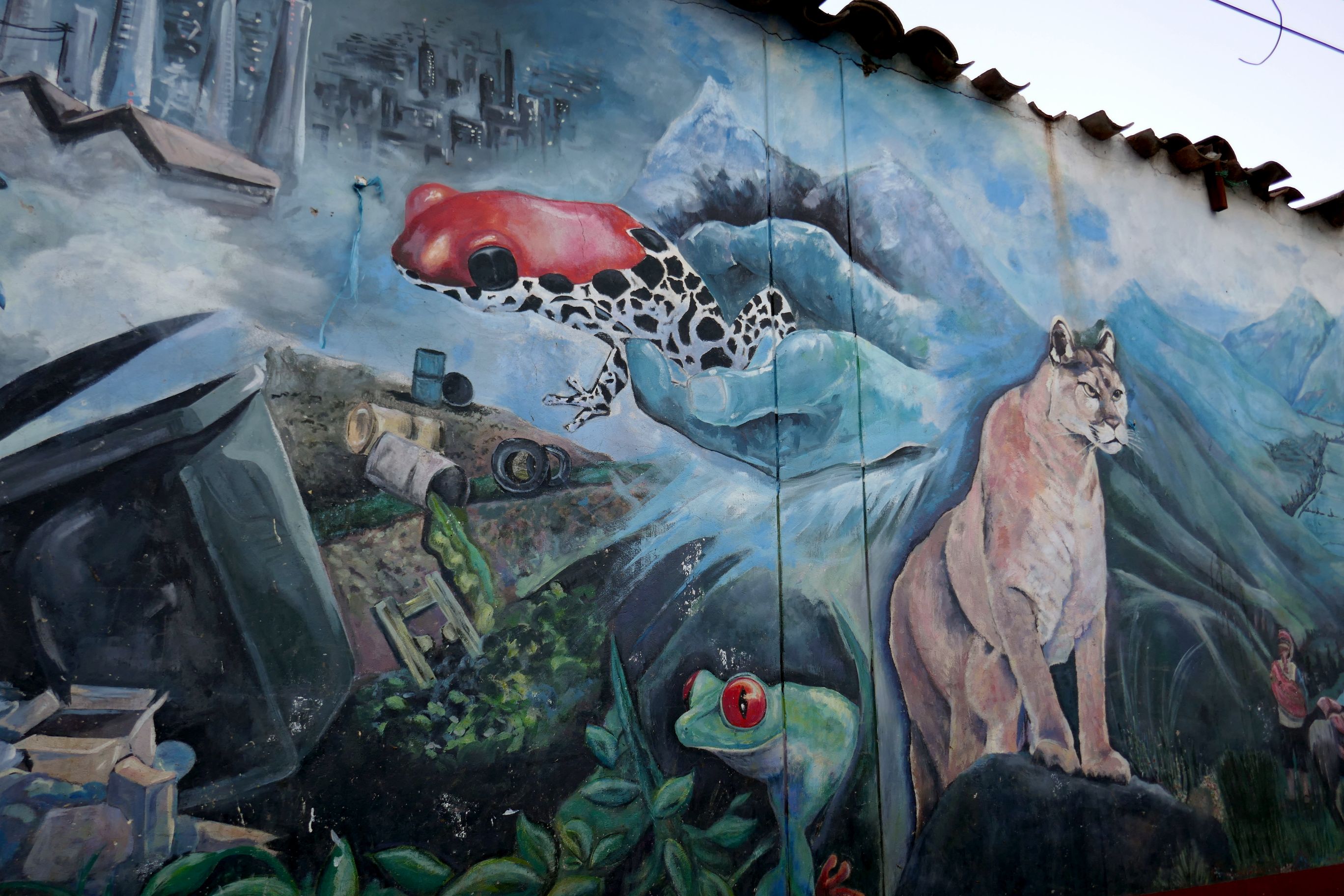 Bruce, Raul, and a vendor who sold me pistachio nuts to give Raul; one of his favorite treats.A mural on the side of the market