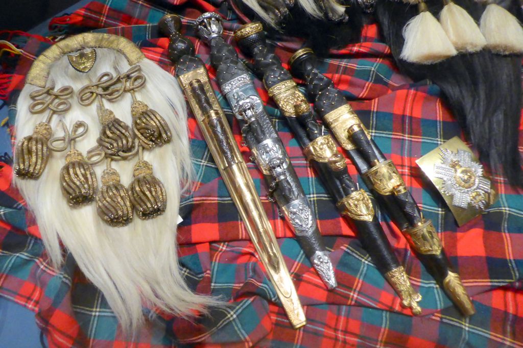 From a sign near this display: “…Maintaining the highland military image was an expensive business. At a time when officers had to kit themselves out at their own expense, the regiments became a magnet for the wealthier and more fashionable officers of the army. Ironically, the extra expense of maintaining a highland soldier’s kit was a burden to those serving in the ranks.”