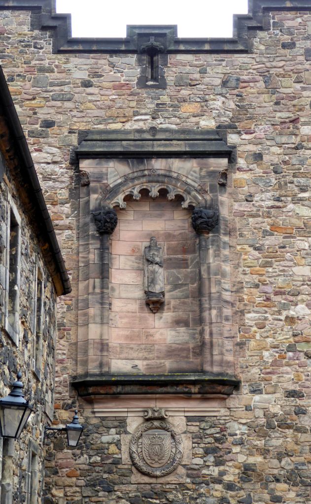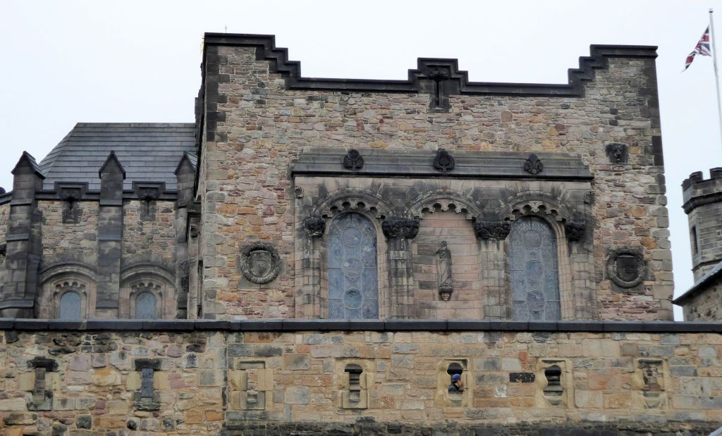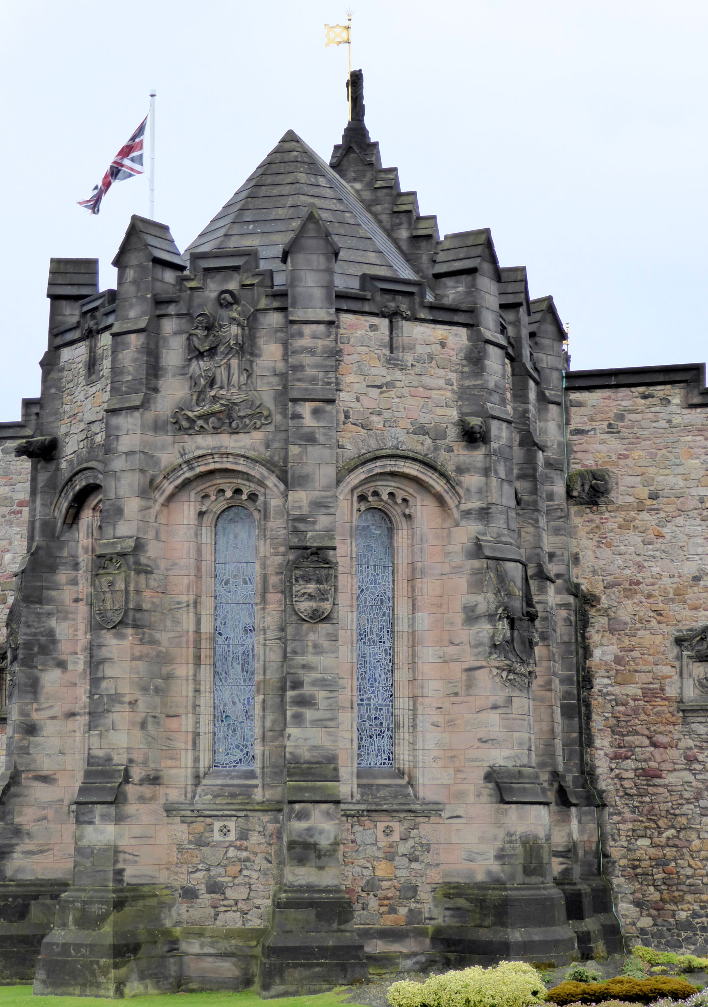 The stained glass windows (below) were photographed inside St. Margaret’s Chapel, located above the dog cemetery. It is the oldest building in Edinburgh Castle. Built in about 1130, it is dedicated to Queen Margaret, who lived in the castle in the late 1000s.