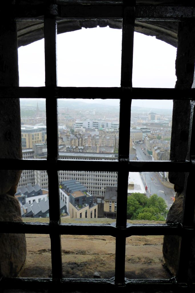 Royal Edinburgh Ticket and reserved Edinburgh Castle Tour ticket in hand, we boarded the green double-decker tour bus and climbed the stairs up to the top for our guided hop-on-hop-off tour. It was raining lightly, so Bruce opted for the covered seats in front, and I headed to the back, so I could do some photography on the way to the castle. Thank goodness for waterproof pants! I swept the puddle of water off the seat, plopped myself down, and happily snapped off a few shots (that appeared in my last post).