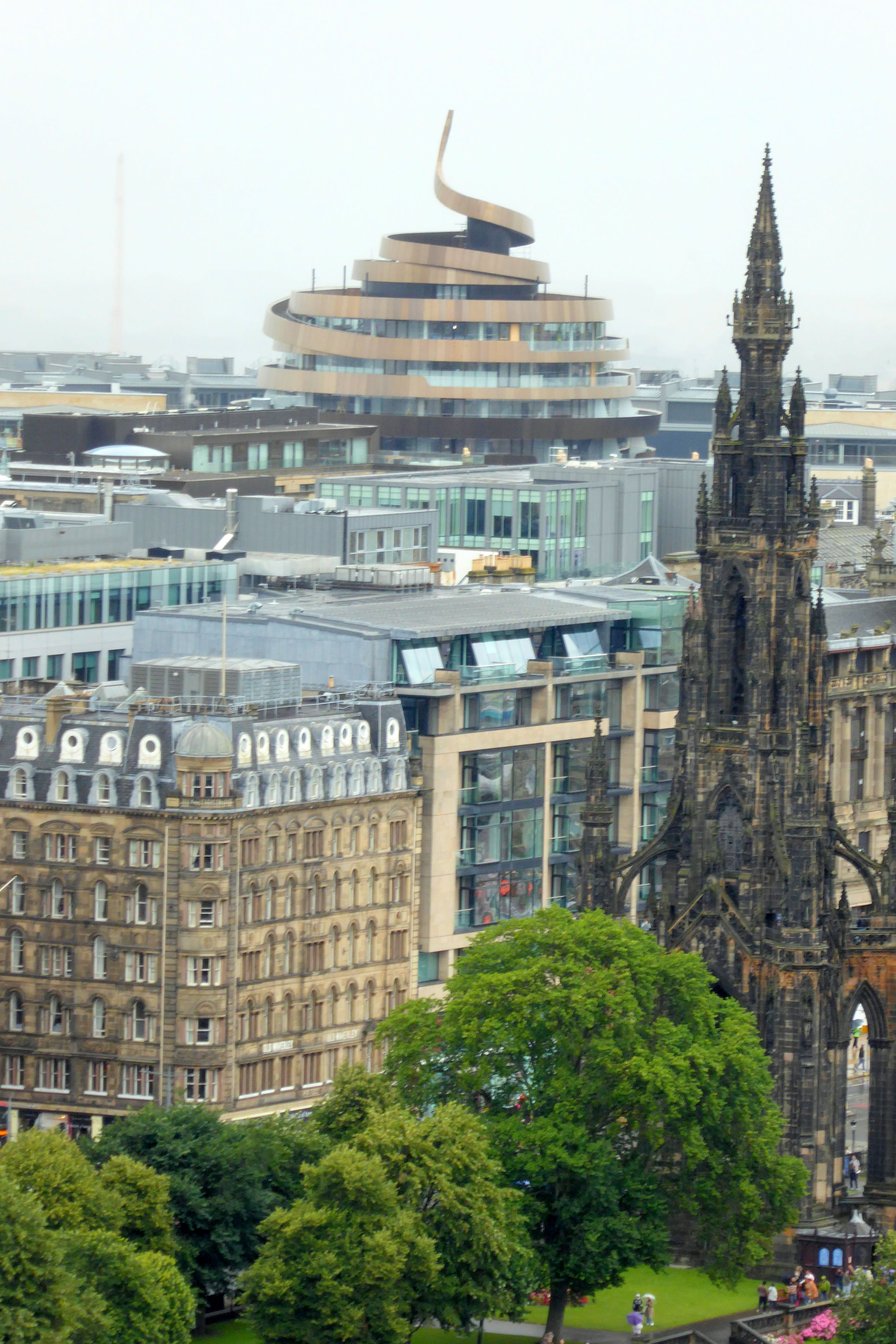 See that funny-shaped building off to the right in the distance (above) and in the center-top (below)? Check out this article about the “Golden Turd,” (aka the “Poop Building,” as well as several other not-so-complimentary names.) W Edinburgh is located in the St. James Quarter of Edinburgh.