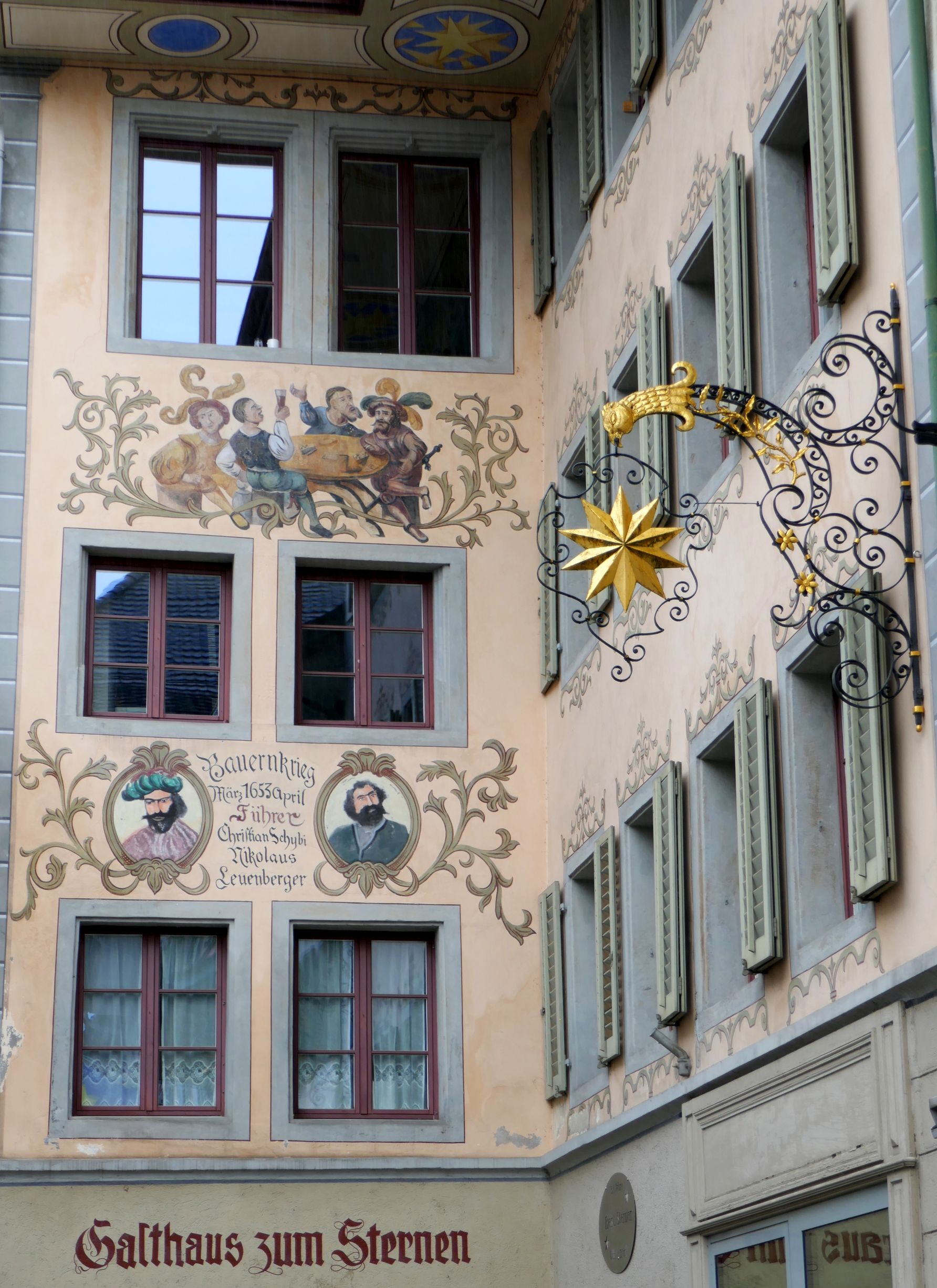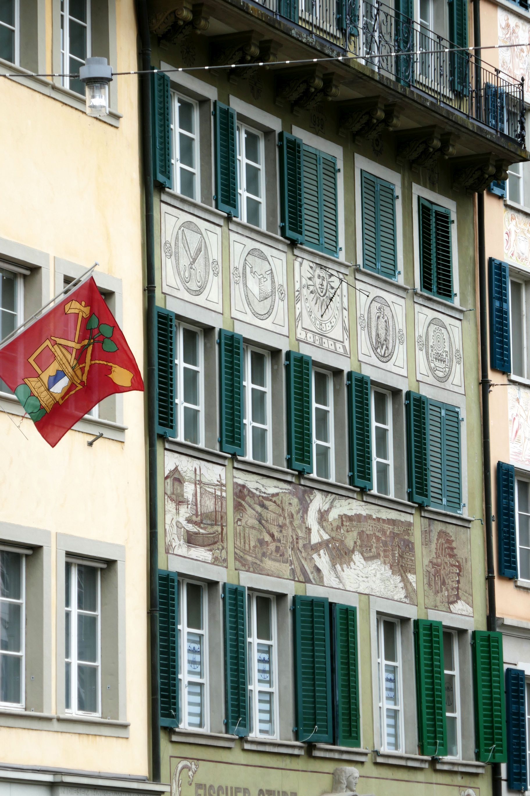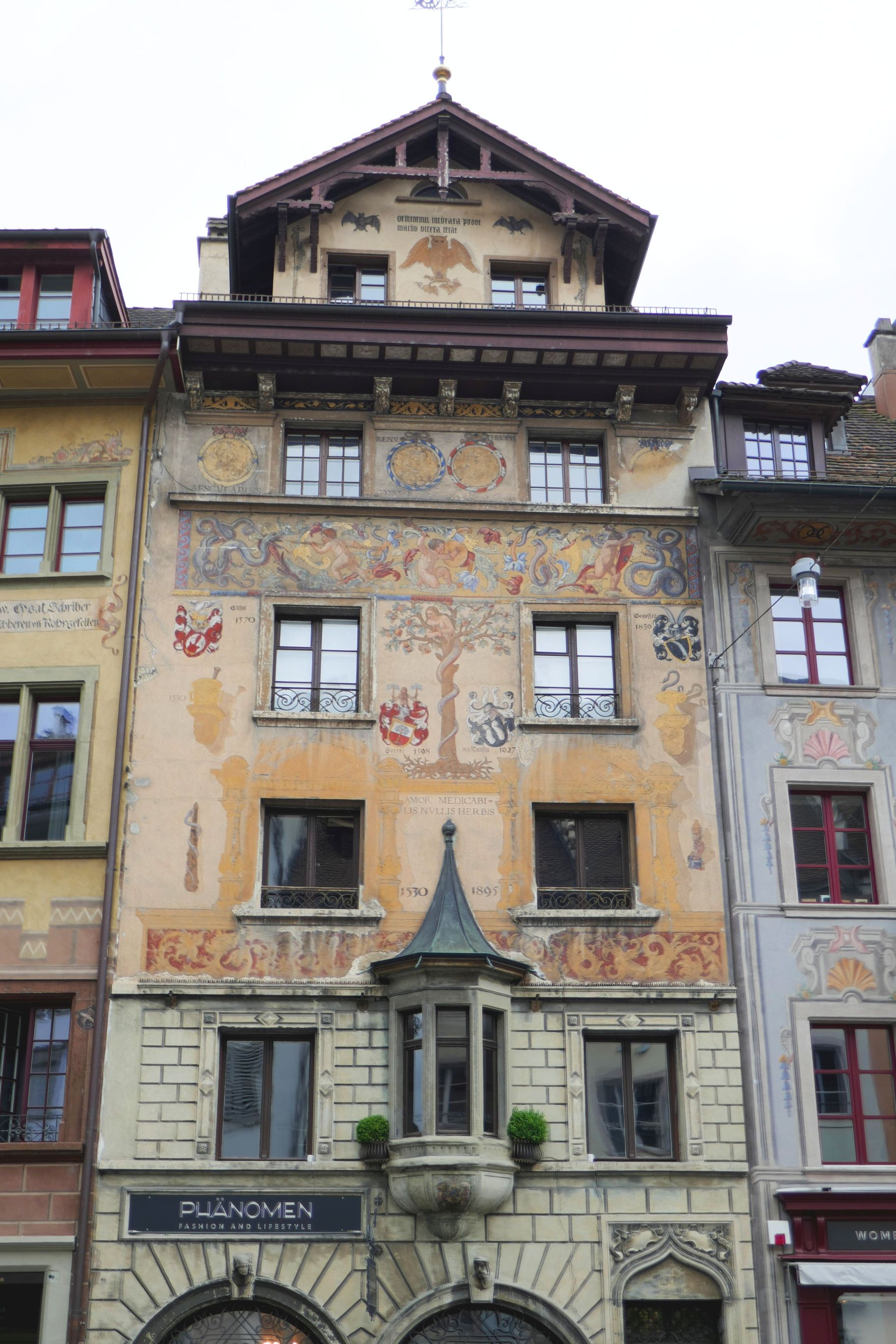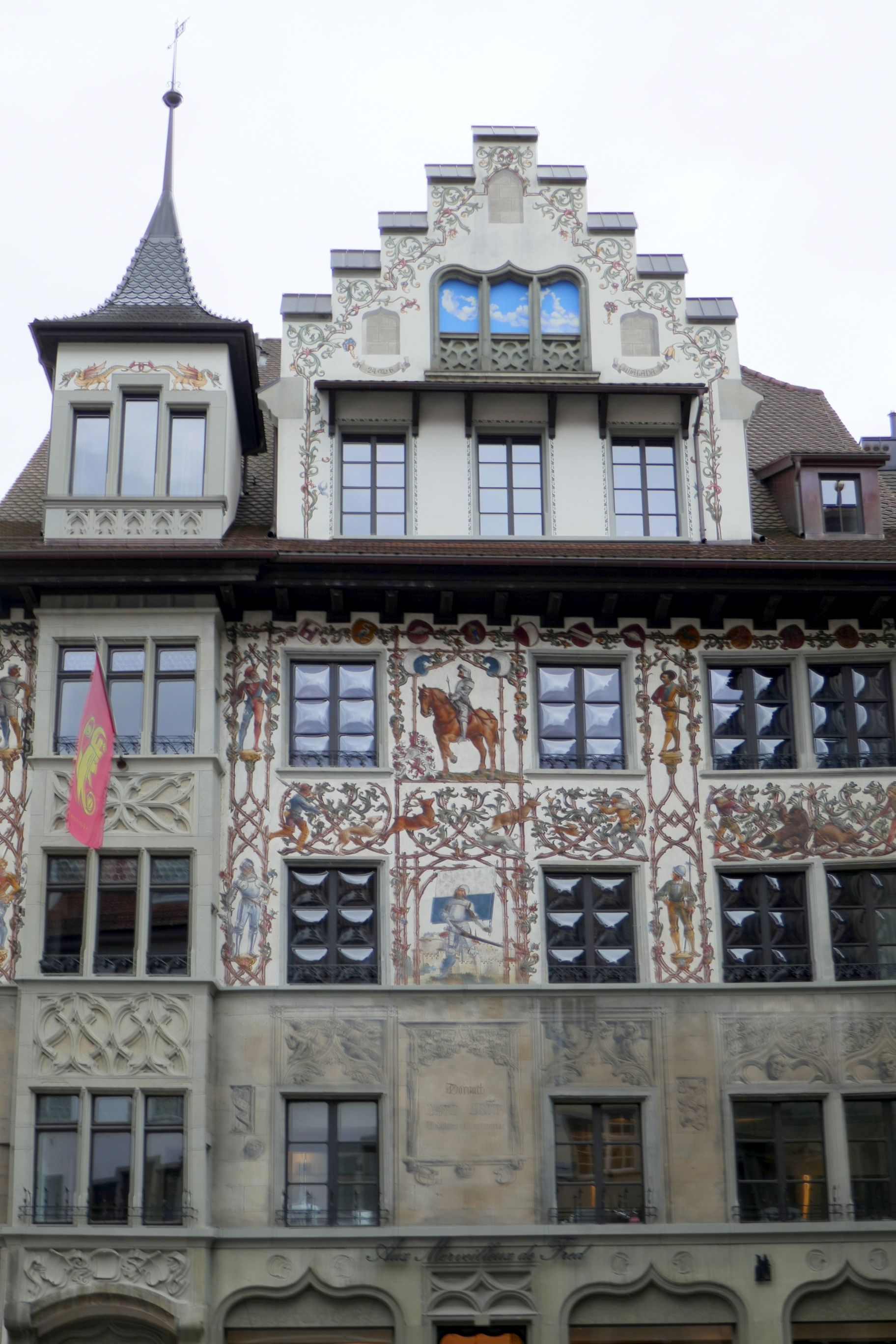 Back to Lucerne, it is a beautiful city of 82,000 people situated on Lake Lucerne and the river Reuss. Many buildings are painted with gorgeous frescos, so if you don’t look up during your exploration, you will miss a lot!