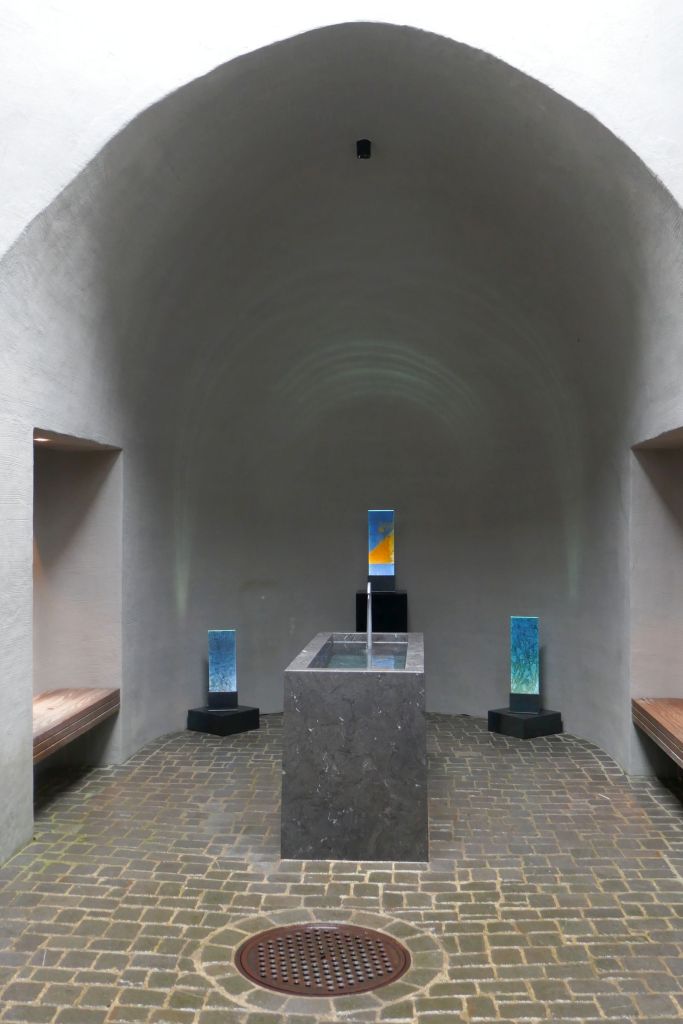 Next, we visited the tiny town of Luthern with it’s even tinier chapel. The walk along the river to our destination was lovely, even though it was raining. Surprisingly, the chapel was quite modern with beautiful stained glass windows and lit fused glass panels.