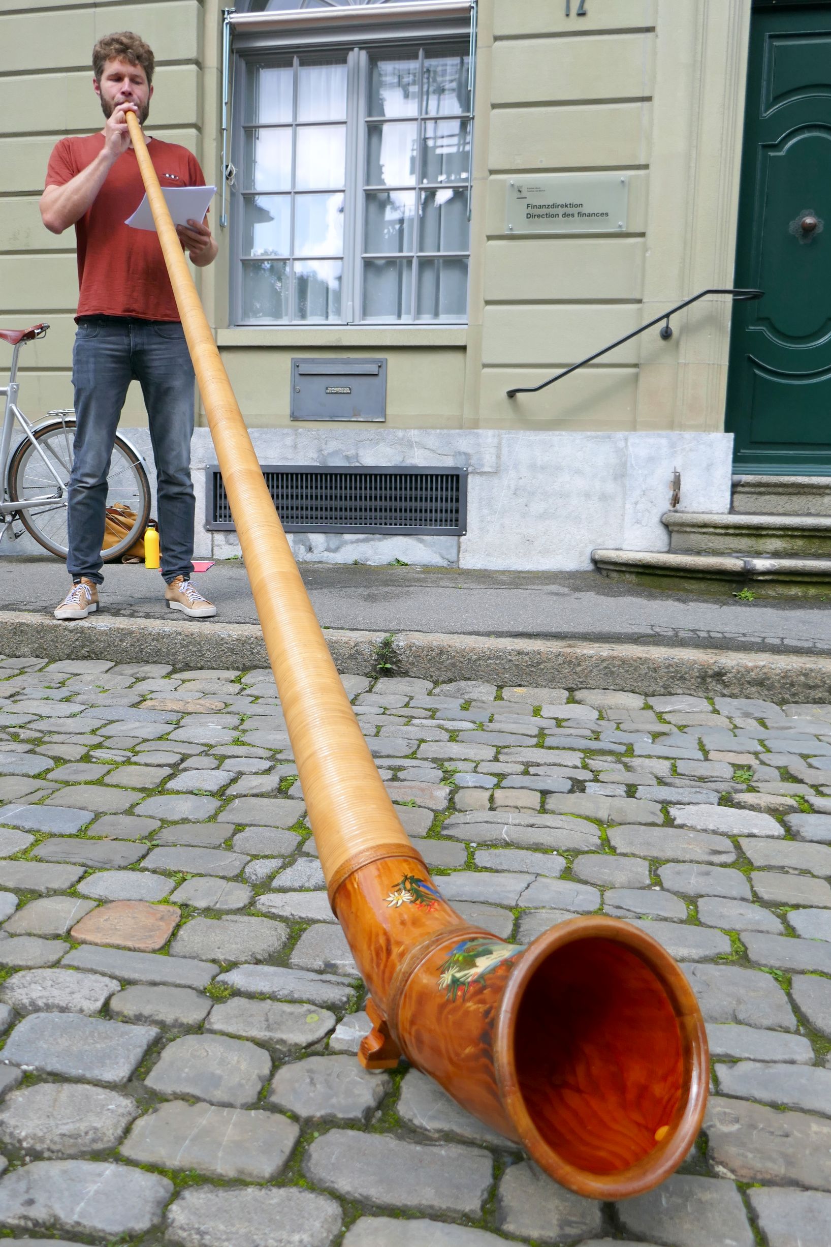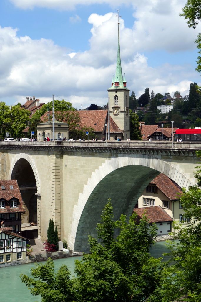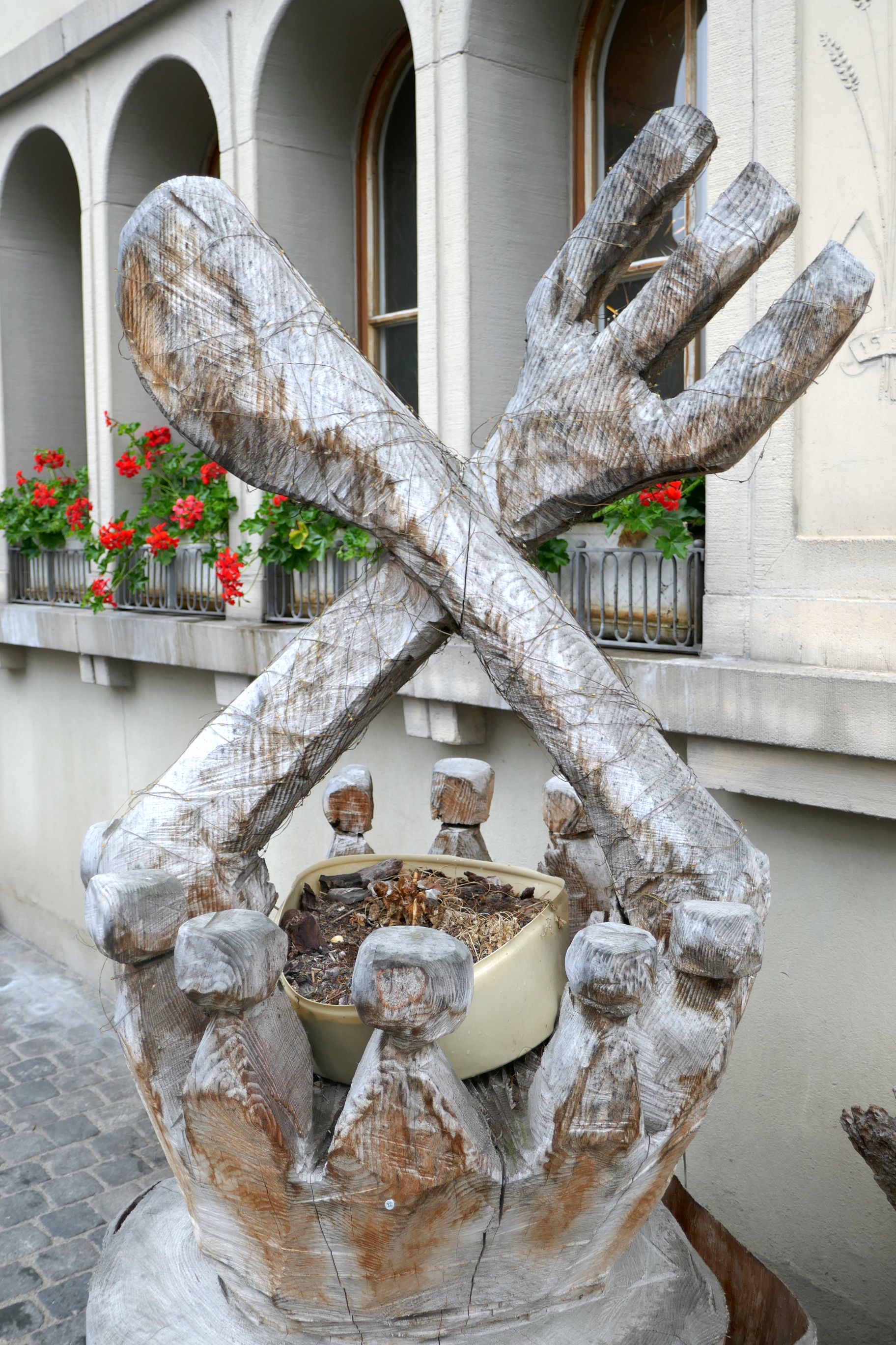 The symbol of Bern has been the bear since the founding duke of the city decided to name it after the first animal he killed in a hunt—at least that’s what legend says. There are other theories as well. Regardless of how the city really got its name, live bears have been held on display in various pits around the old town since 1549. Poor bears; they couldn’t have been very happy. Finally, enough outcry from the citizens resulted in the closing of the old bear pit and a new park was built along the Aare River. Bear Park is free for all to enjoy, and the bears seem quite happy there. We witnessed one of the three bears hunting around for food, finally sniffing out some meat that had been buried deep in the ground by the staff. He dug and dug until he landed the prize—a huge piece of raw beef he happily woofed down.