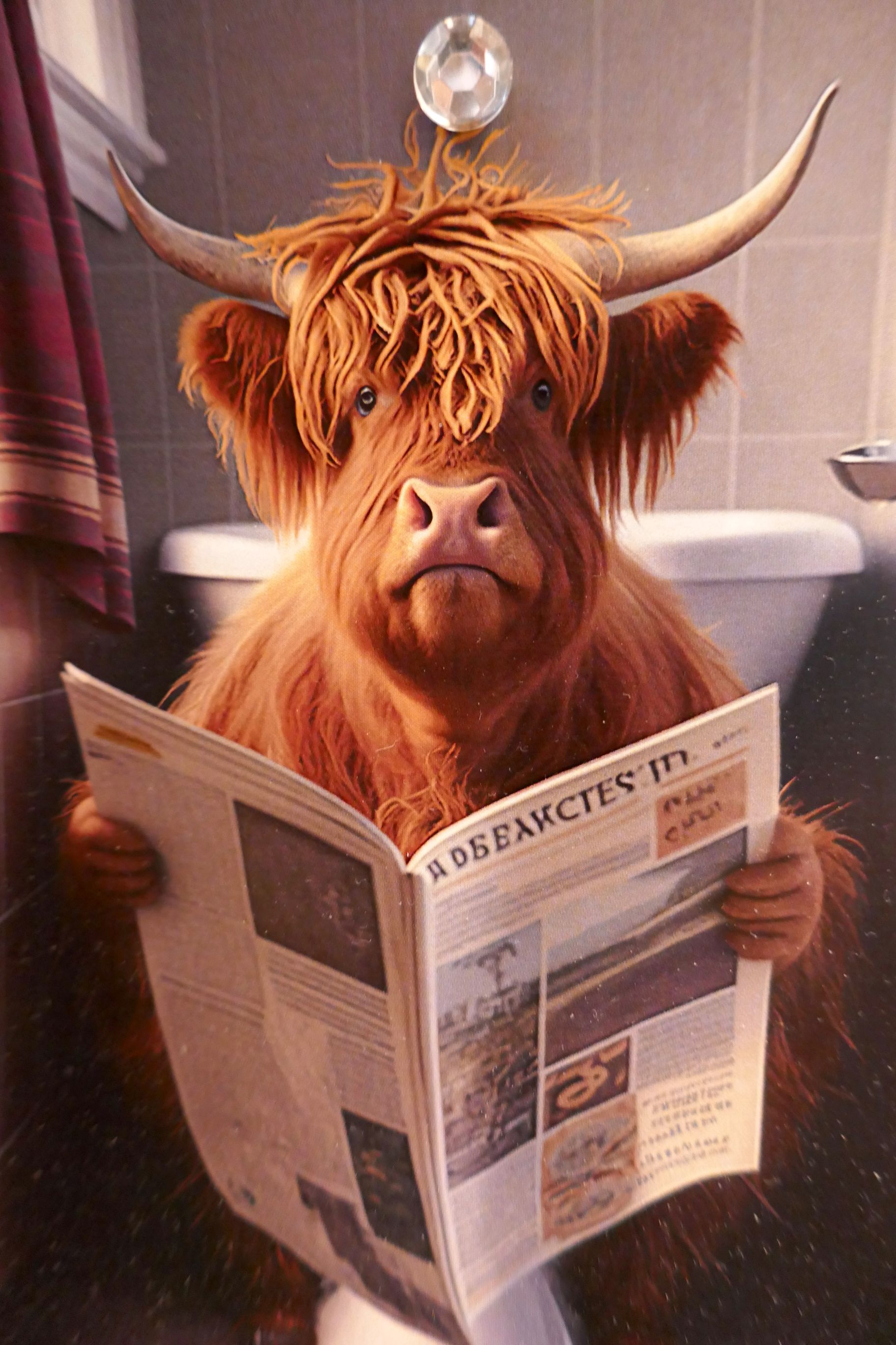 Imagine my surprise when I went to the WC (a.k.a. restroom) and saw these photos vertically strung on a metal cord and attached by magnets in each stall: