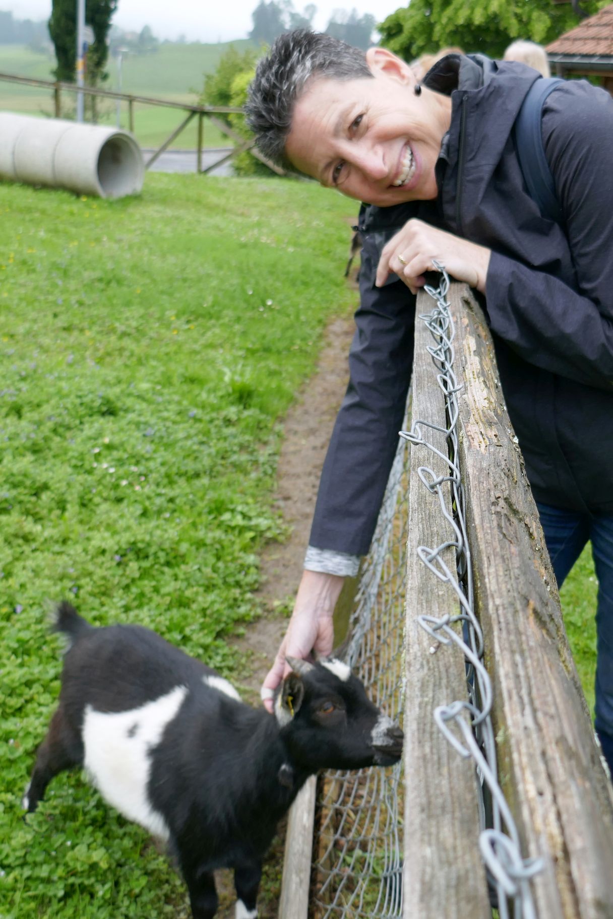 Following lunch, we visited a cheesemaker; however, they weren’t making cheese that day. We did enjoy watching the lady make cheese “roses” with her nifty tool, though. I also took the opportunity to check out a few interesting buildings nearby. But then I discovered the baby goats and spread the word. It was hard for Susy to pull us away; they were adorable!