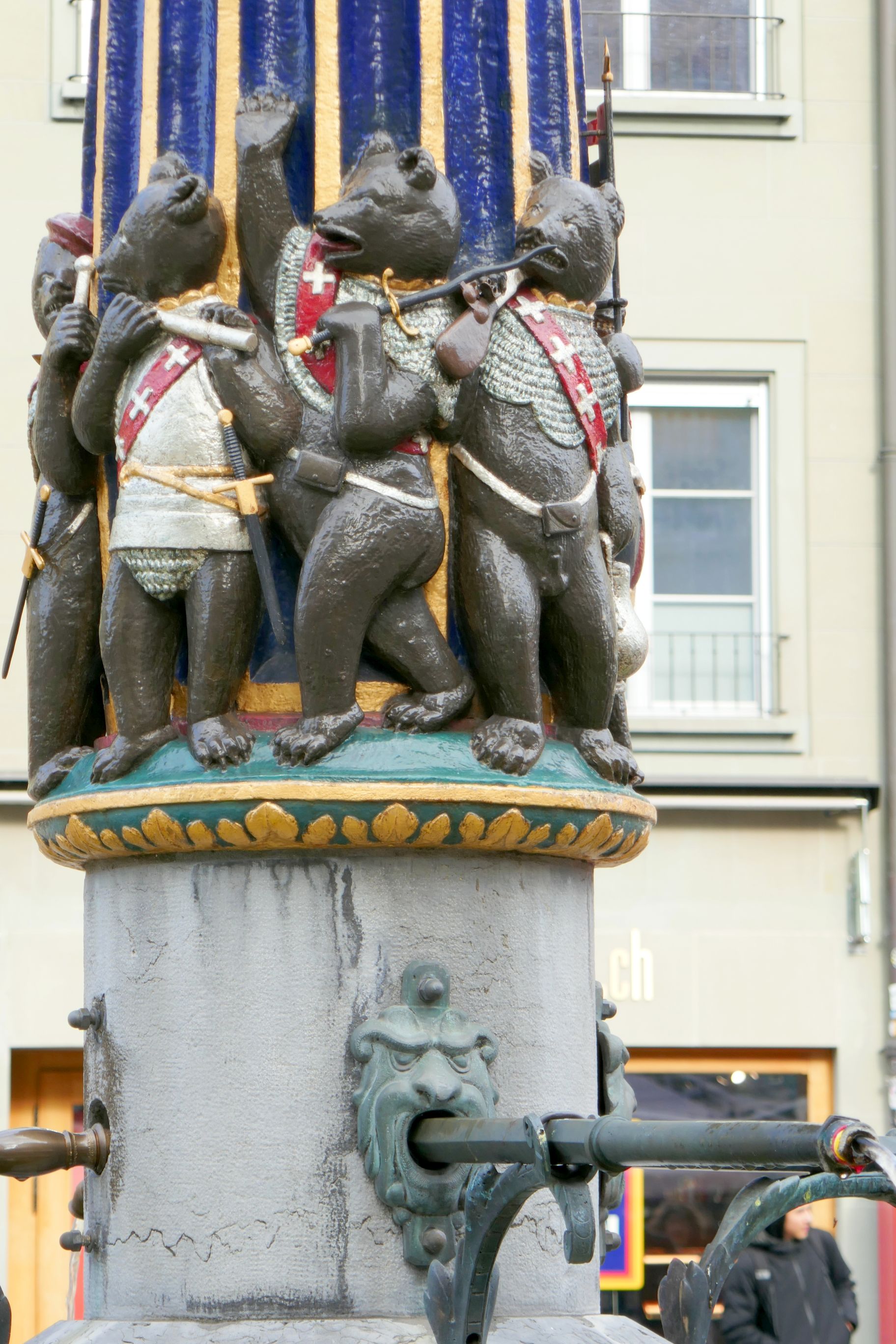 Meanwhile, besides those live bears, the bear symbol appears on flags, coat of arms, fountains, trash cans, and even the manhole covers. Those bears are everywhere, especially on souvenirs.