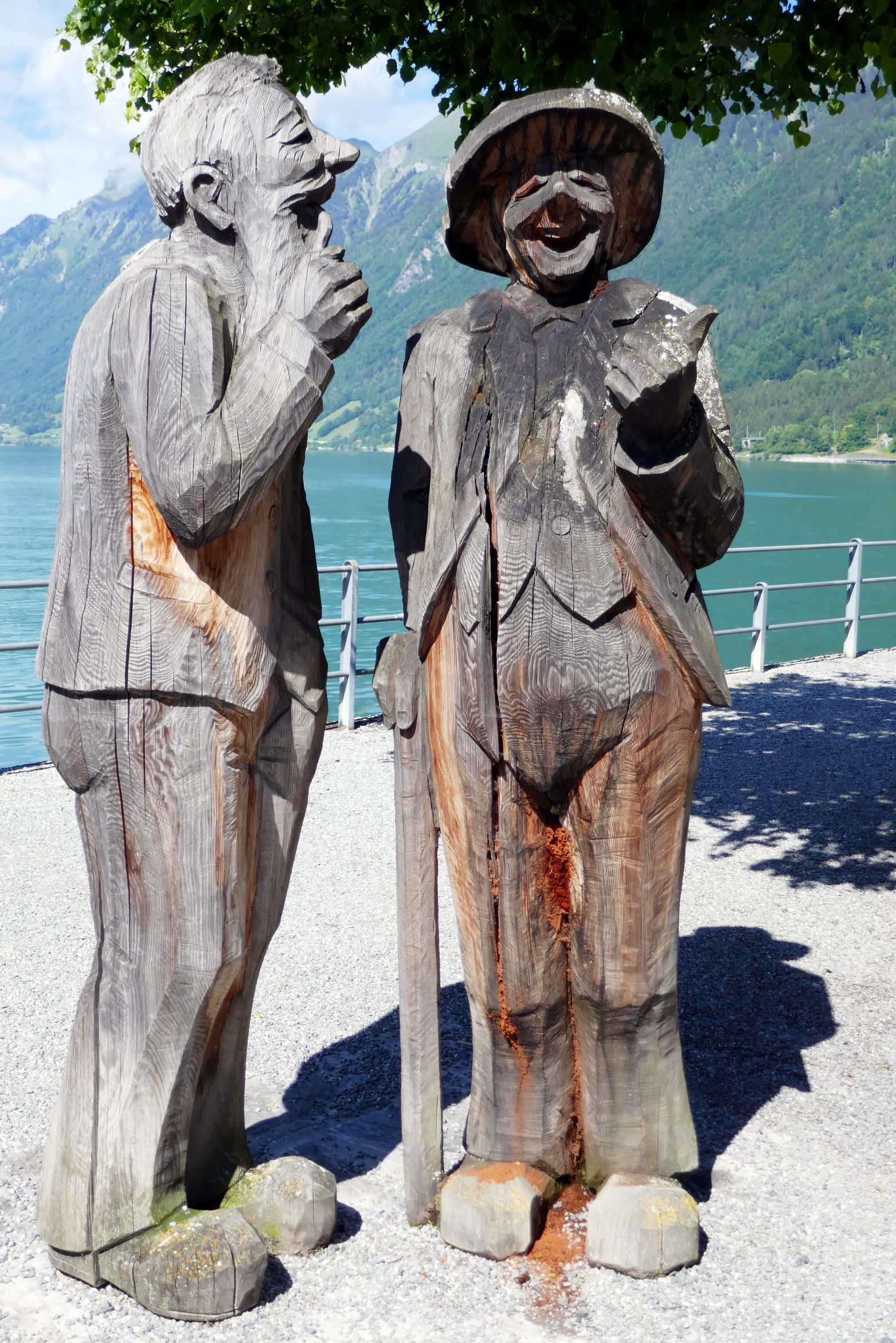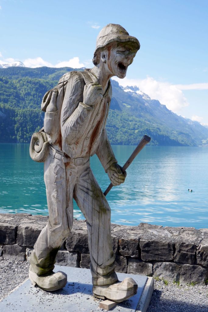 Our first stop was the charming and picturesque alpine village of Brienz where we strolled along the lakefront. The village is known for its talented wood carvers, and everywhere we looked, there were charming carvings that we enjoyed along the way. We also visited a shop to see wood carvers working on their creations.