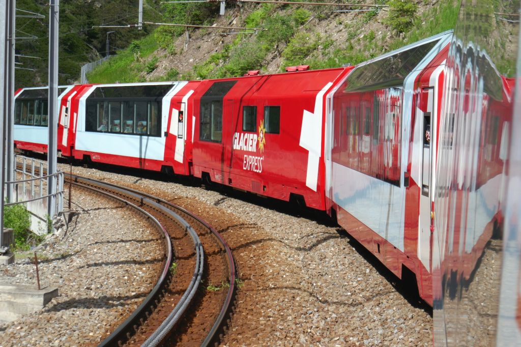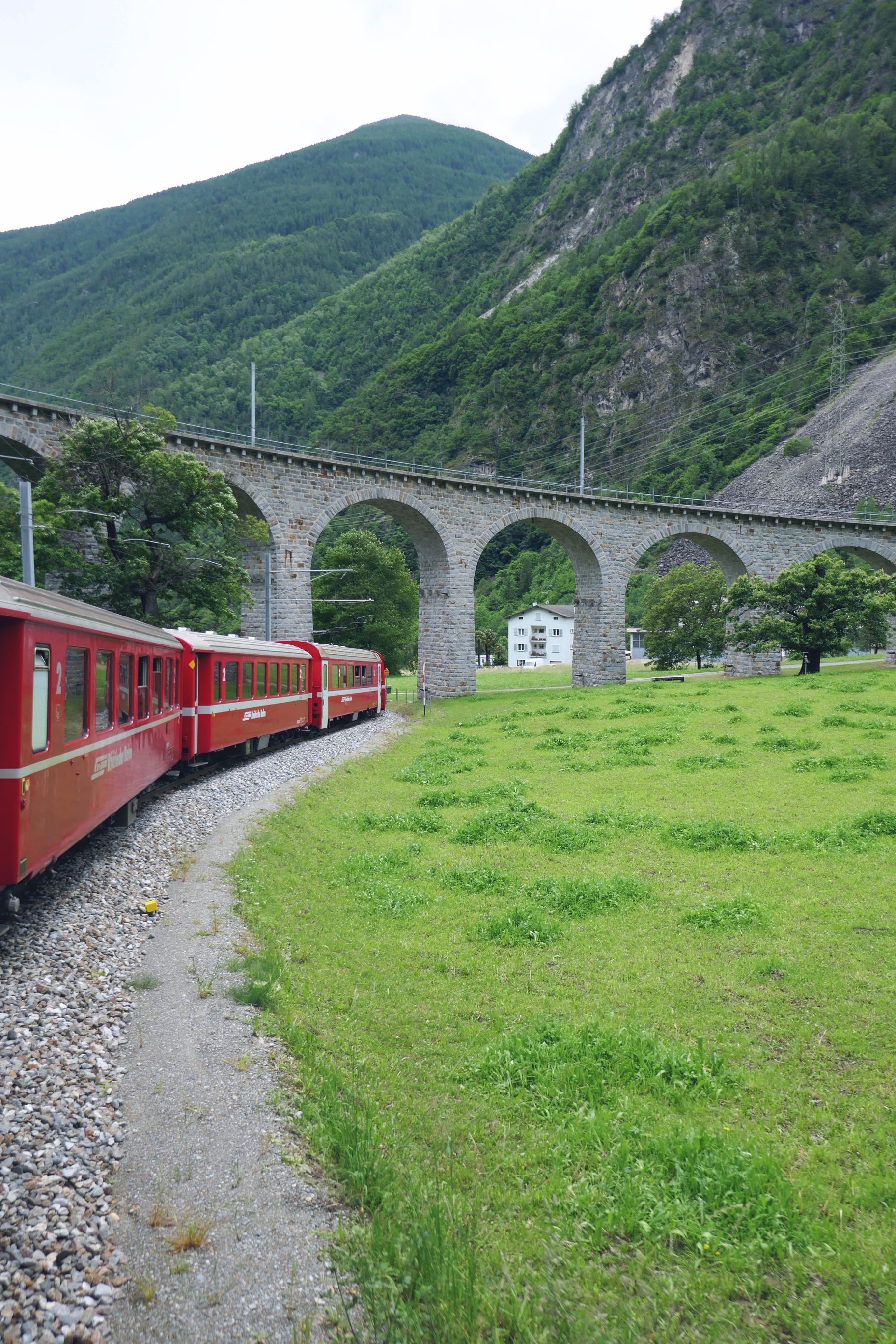All aboard the Glacier Express! Known as the world’s slowest express train, the shiny and spotless red locomotive took us through tunnels and across bridges, from one gorgeous panorama view to another.