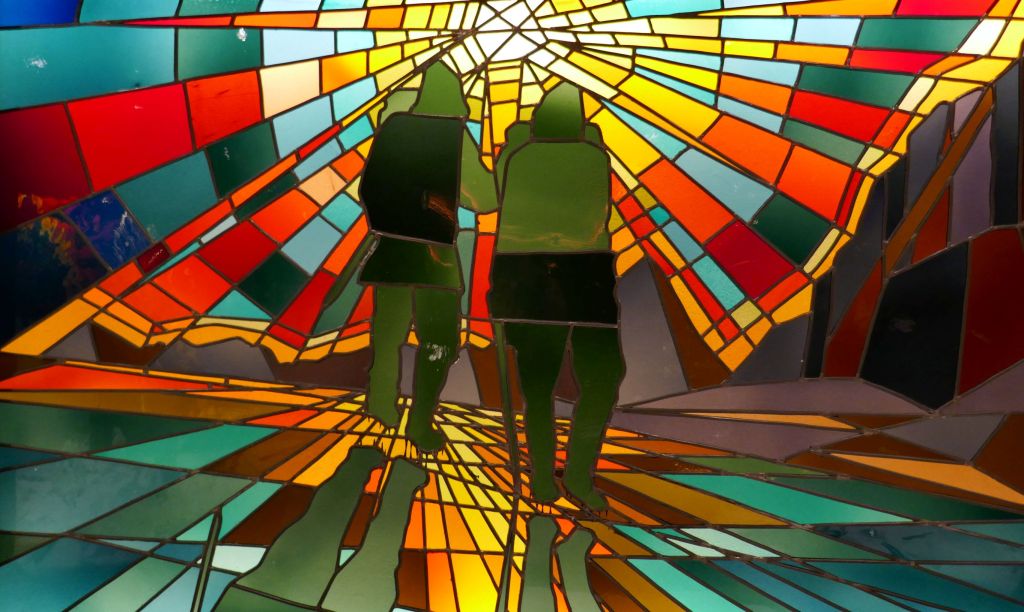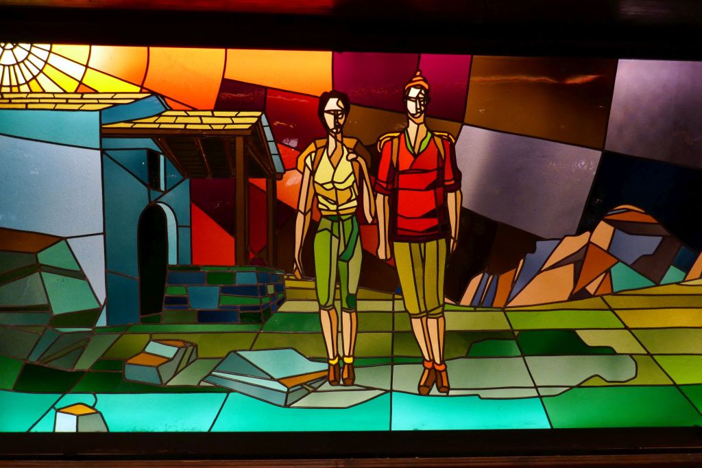 These are three of the large stained glass panels that were mounted on the walls of the restaurant where we had dinner our first night. They depict Alex and Gisela enjoying their outdoor adventure passions.