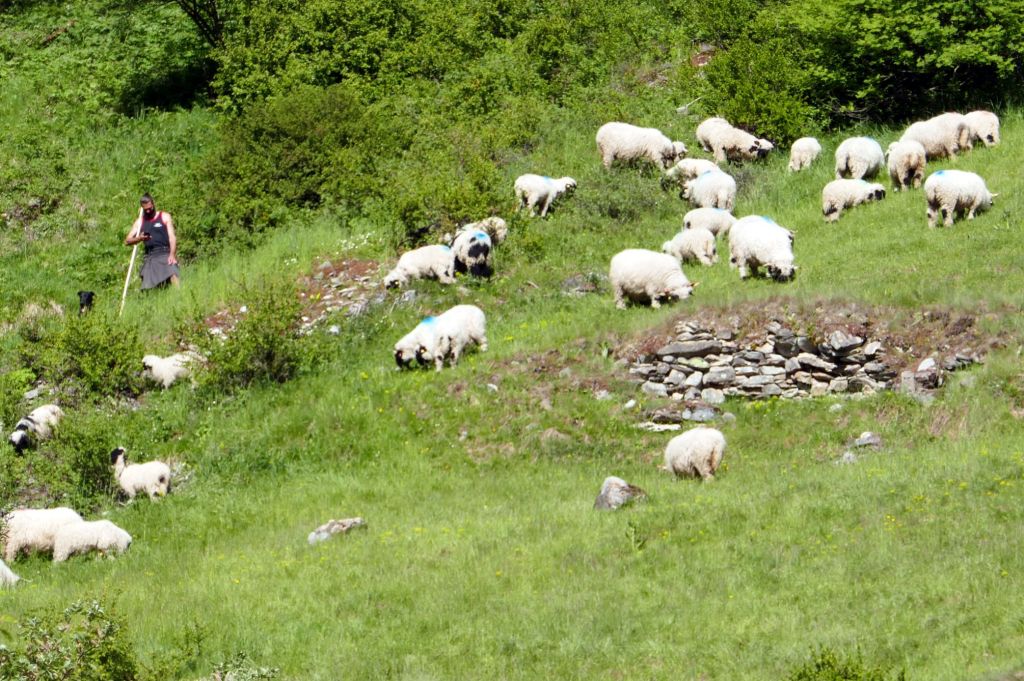 I could hear cowbells off to the right. I was quite surprised to find this kilt-clad shepperd checking out his cell phone.