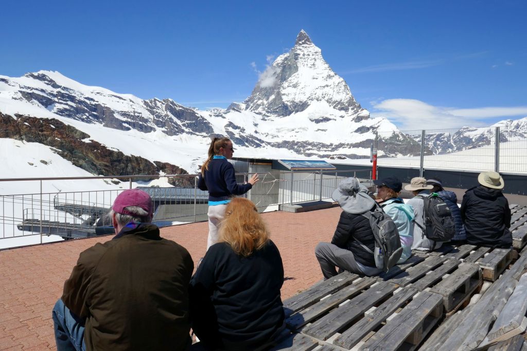 Our tour leader, Susy, sharing information about the Matterhorn to our group of nine travelers.
