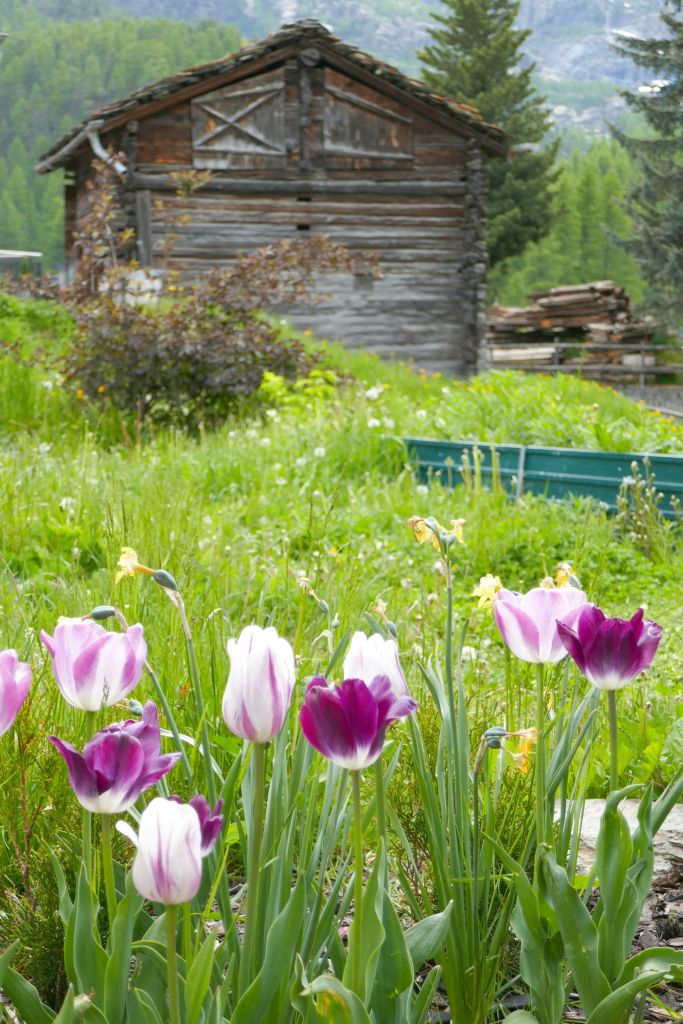 When we went to bed the previous night, we had hoped to wake up to a sunny day and blue sky. Snow-capped mountains look so flat against a mucky background, and we were hoping to see and photograph the Matterhorn at its best. Bruce and I were not disappointed. Just look at the view out our window!
