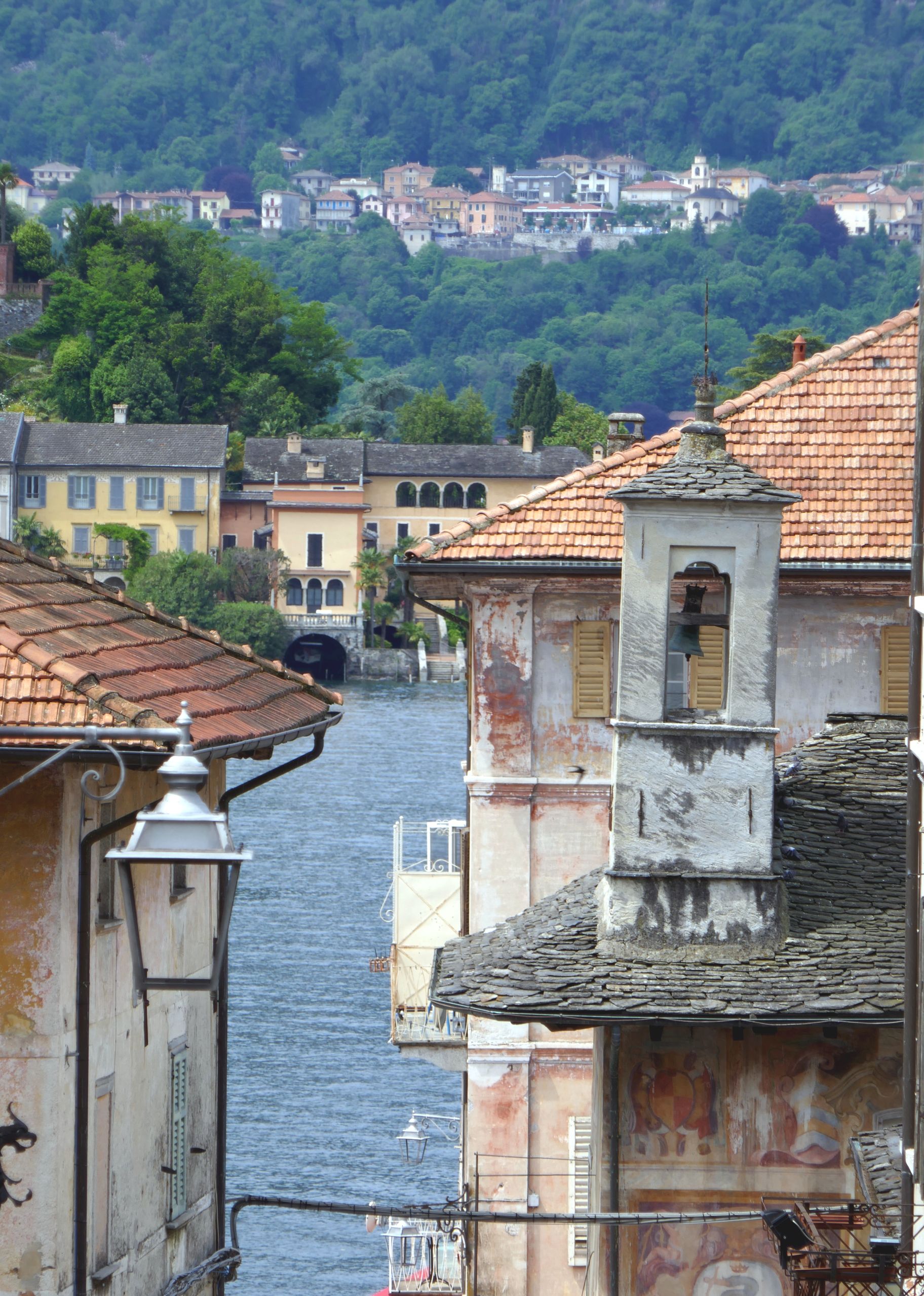 For an al fresco lunch and some free time to explore, we stopped at Lake Orta. The road was so narrow, our driver had to park the minibus, so we could transfer to a local van to continue, requiring two trips for our group of nine and Susy. The town was so charming and photogenic—well worth tackling those logistics.