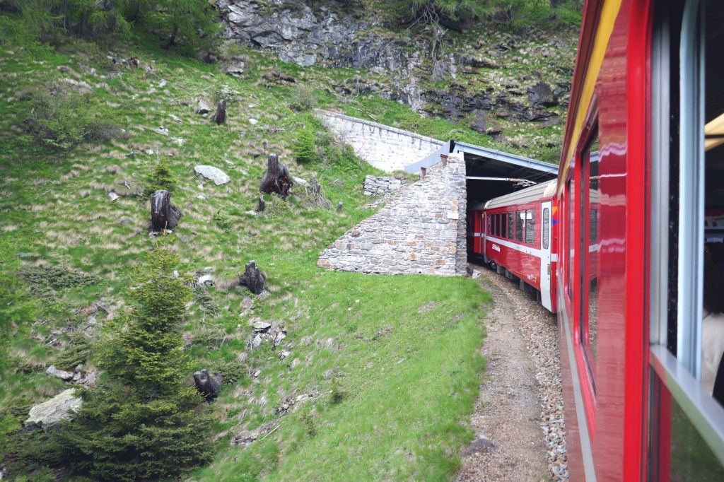 The journey took us over bridges and viaducts (including a full 360 loop over one of them), through tunnels, past glaciers and alpine meadows, and through tiny villages and vineyards. I did not take this ride sitting down or with the window closed! Fortunately, I was sitting across the aisle from another photographer in our group, so we shared windows on both sides of the train, jumping back and forth when we saw something worth shooting—which was often!