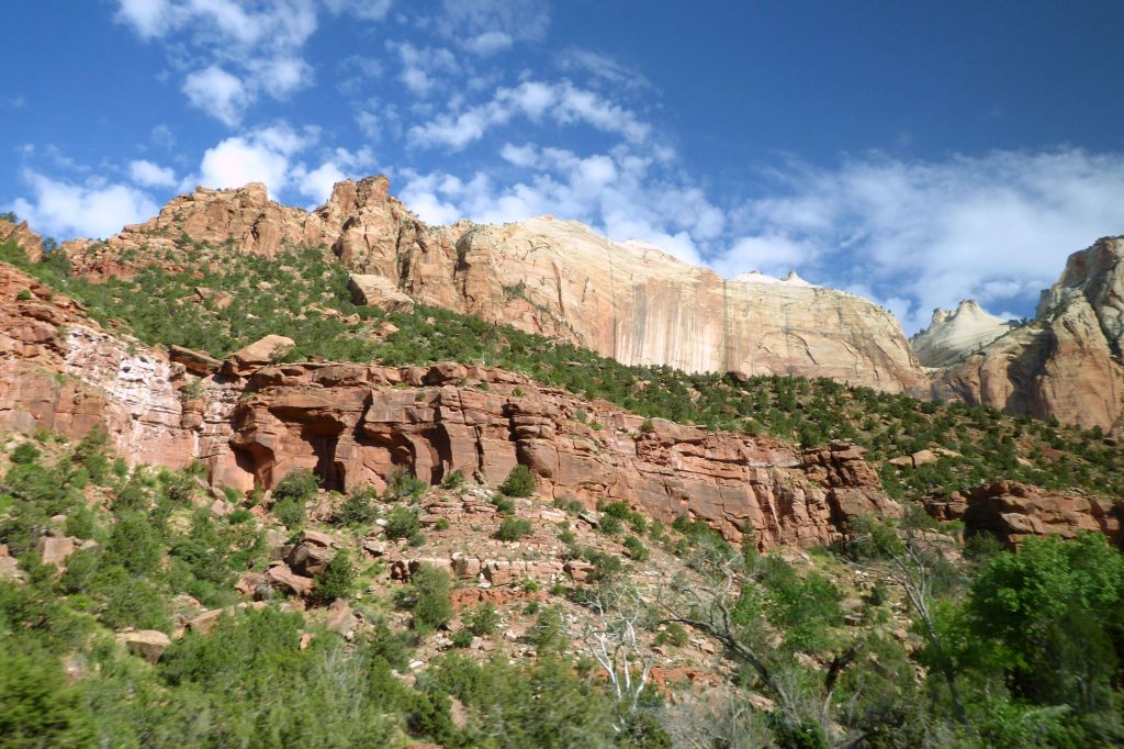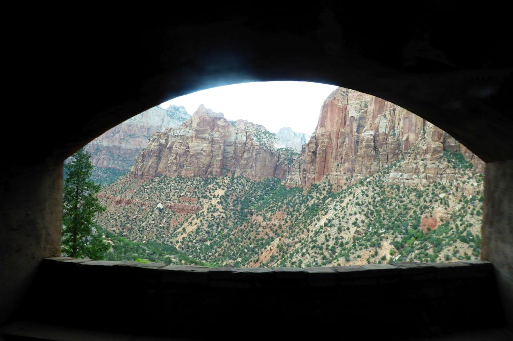 On our way to our next hotel at Bryce Canyon, we traveled through the Zion tunnel. I was able to grab this shot in the tunnel, shooting out the bus window, and through an opening.