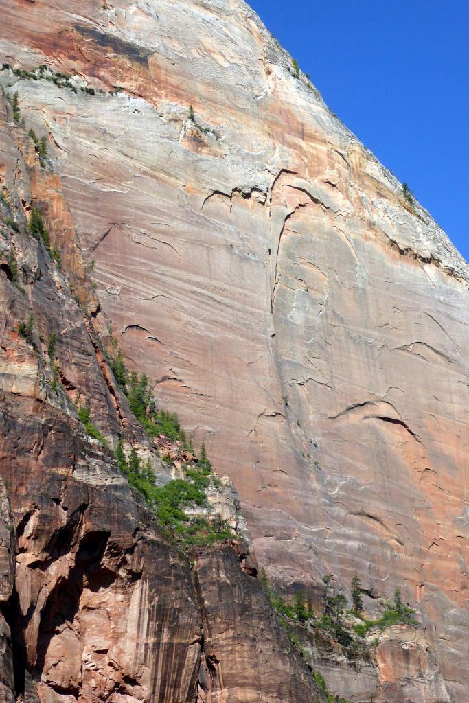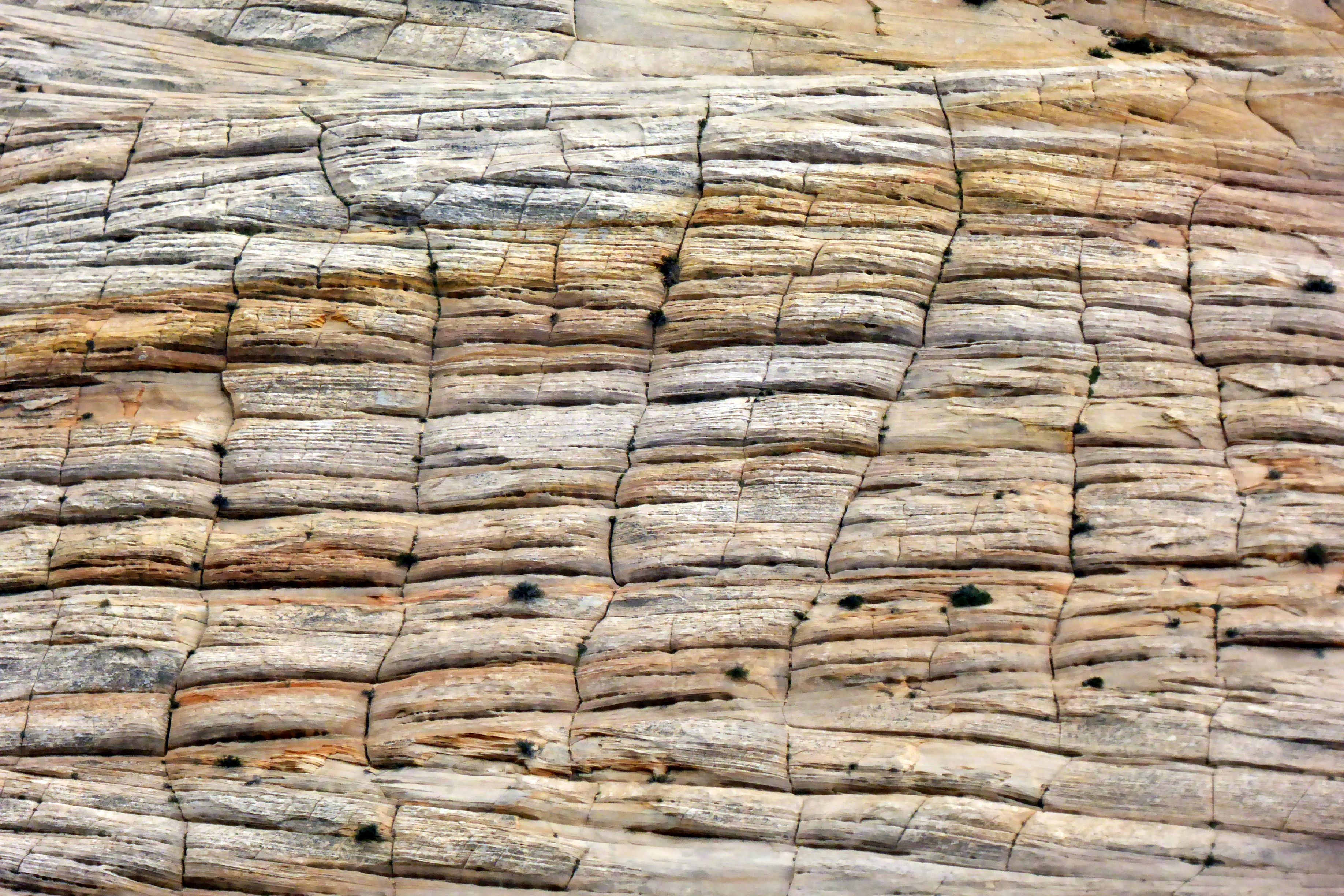 Checkerboard Mesa is at the east entrance of Zion, after leaving the tunnel. This is naturally sculpted rock. The horizontal lines is evidence of ancient sand dunes, and the vertical lines are fractures that have been enlarged over the years by runoff from rain and melting snow.