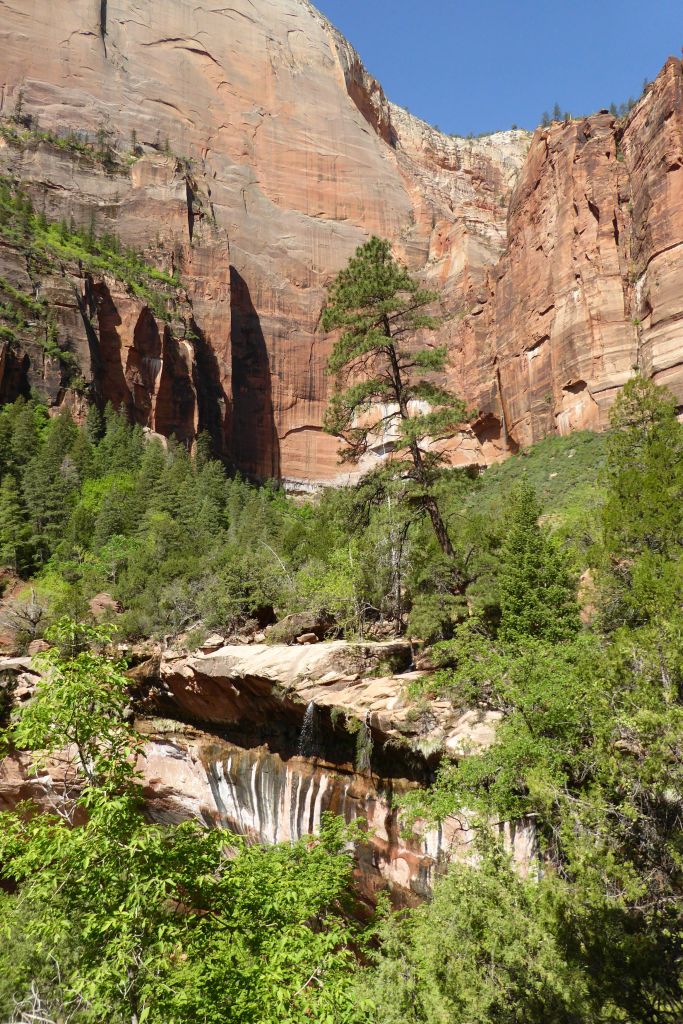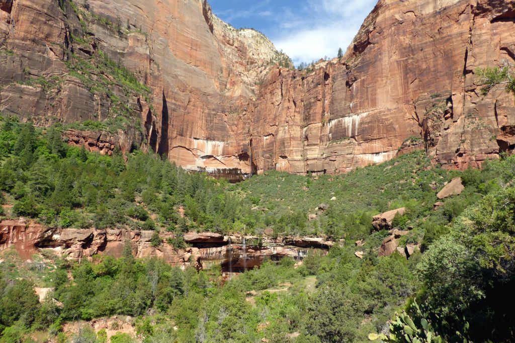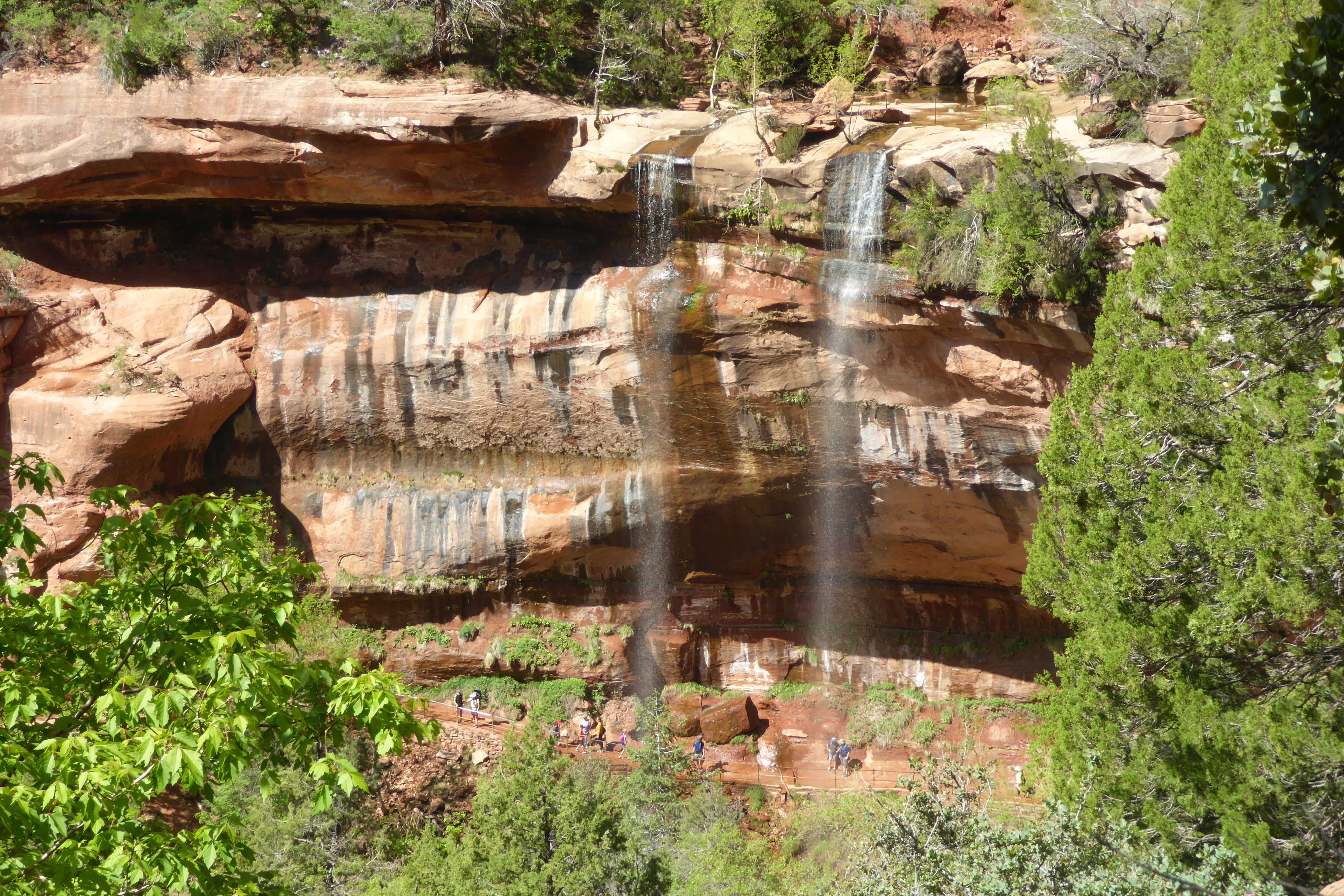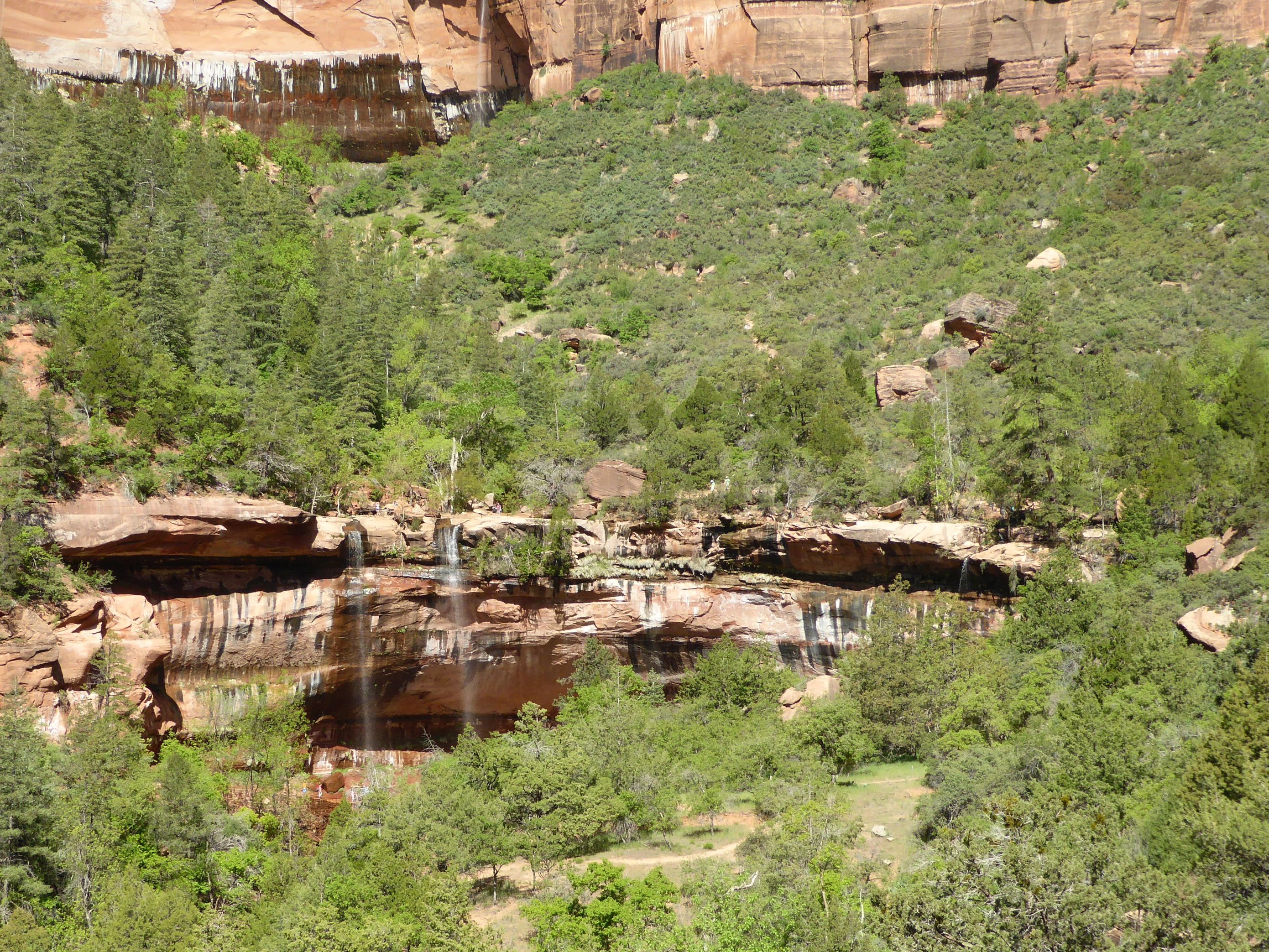 Our first sight of the Emerald Pools and waterfalls