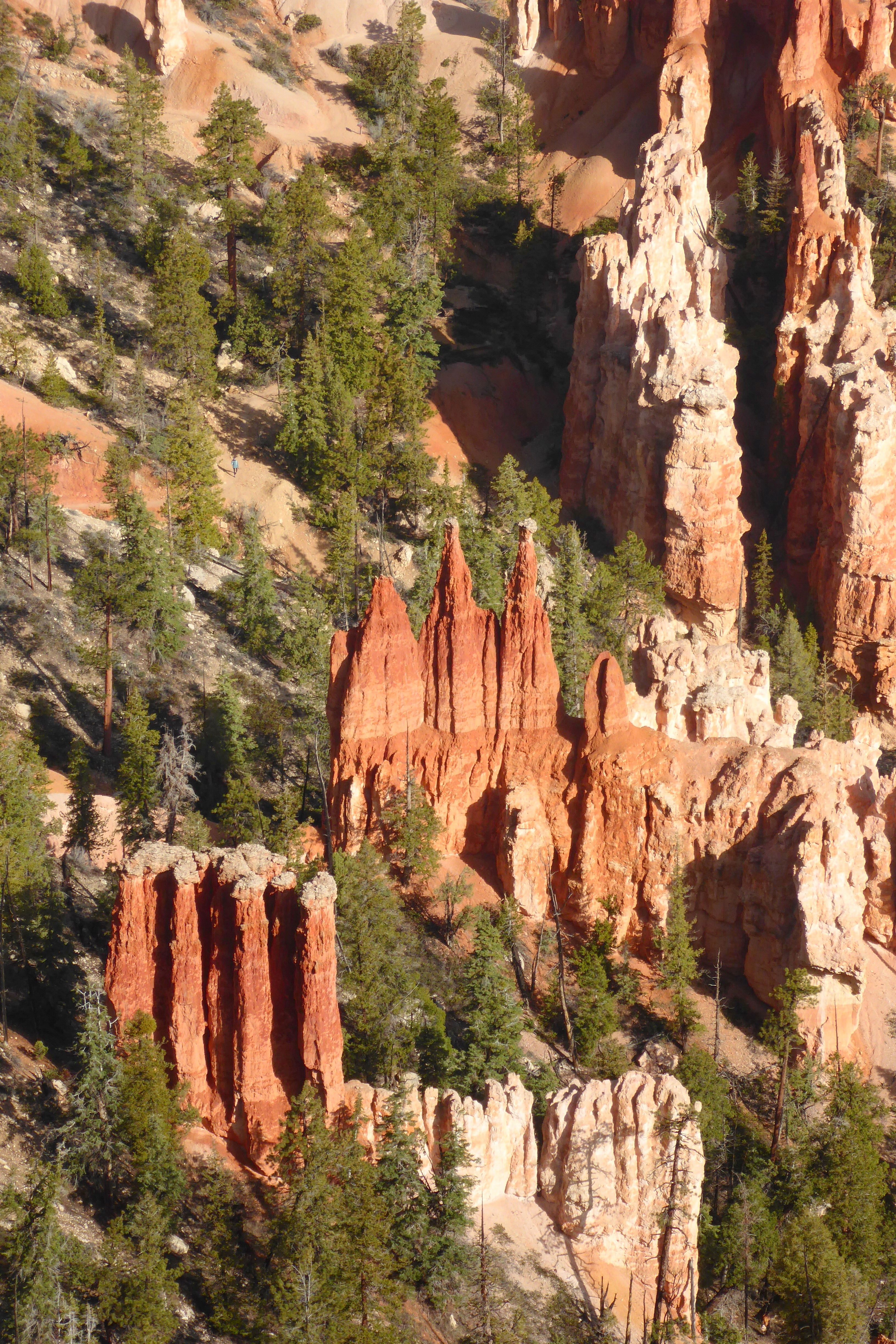 The best vantage points to see the hoodoos are Bryce Point, Inspiration Point, Sunset Point, and Sunrise Point.  We covered them all, and some of us also hiked down the Queen’s Garden Trail from Sunrise Point, descending 320 feet before heading back up to an elevation of 8,300 feet.