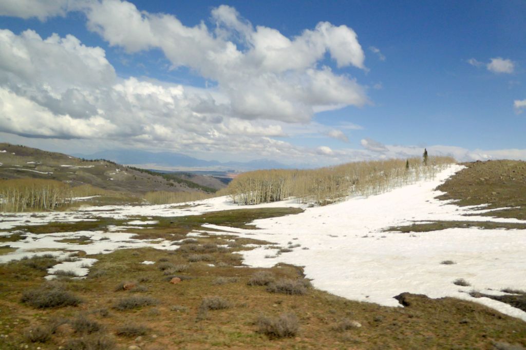 After we left Bryce, we enjoyed the views of Grand Staircase Escalante National Monument before driving through Boulder at 9,600-feet elevation. We made a brief photo stop, and I immediately ran down to pack a snowball. Nobody wanted to play catch with me, though.