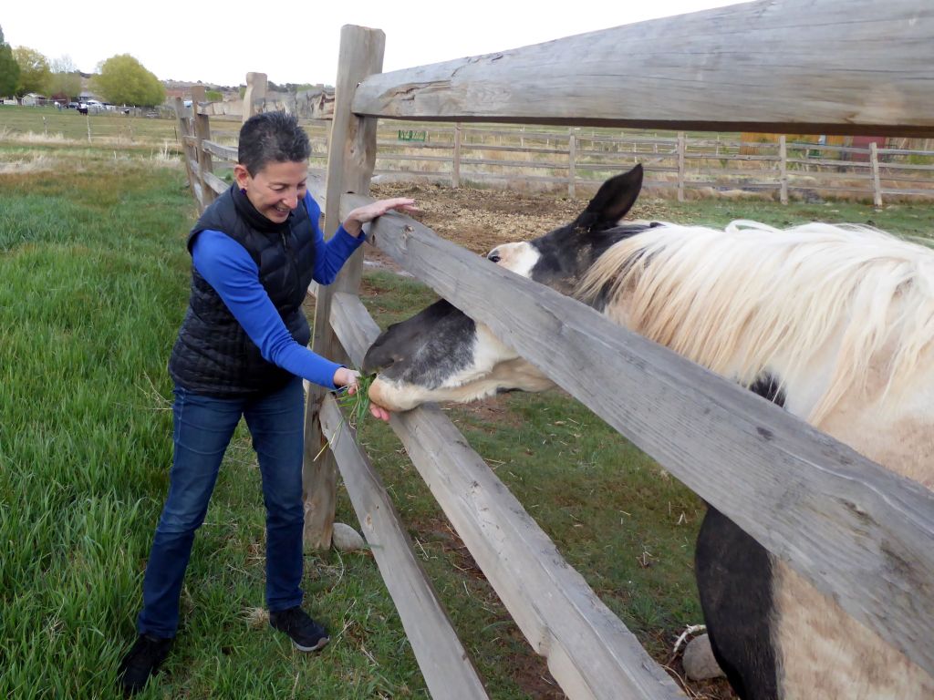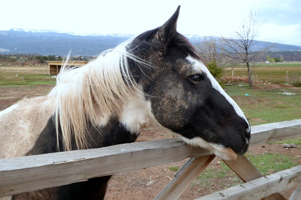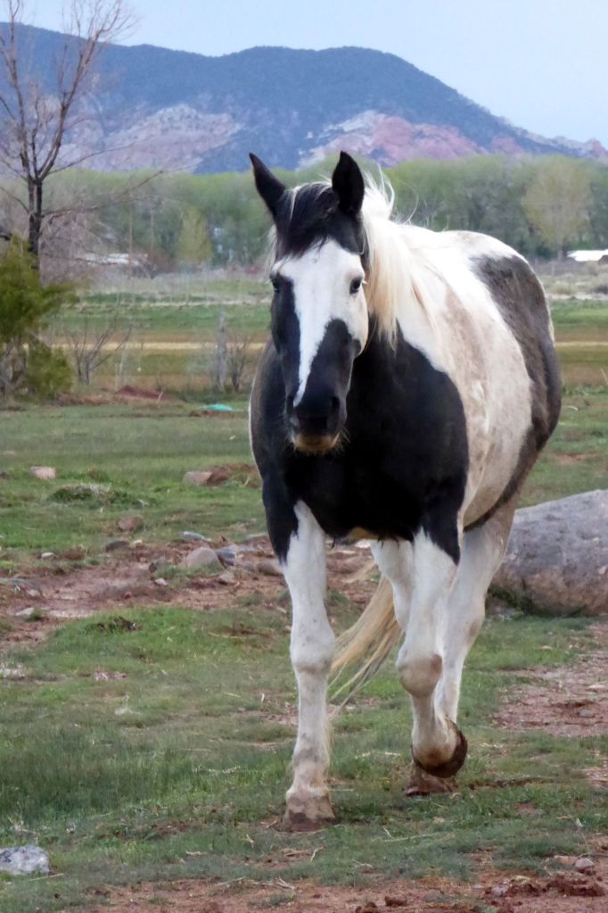 After checking in at the Red Sands Hotel, in Torrey, I gazed out the window and noticed cows and a bison off to the left, and this beautiful horse straight ahead. I went out to make a new friend.