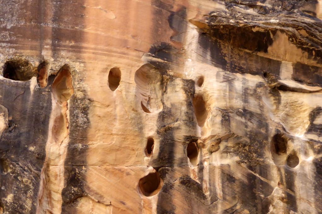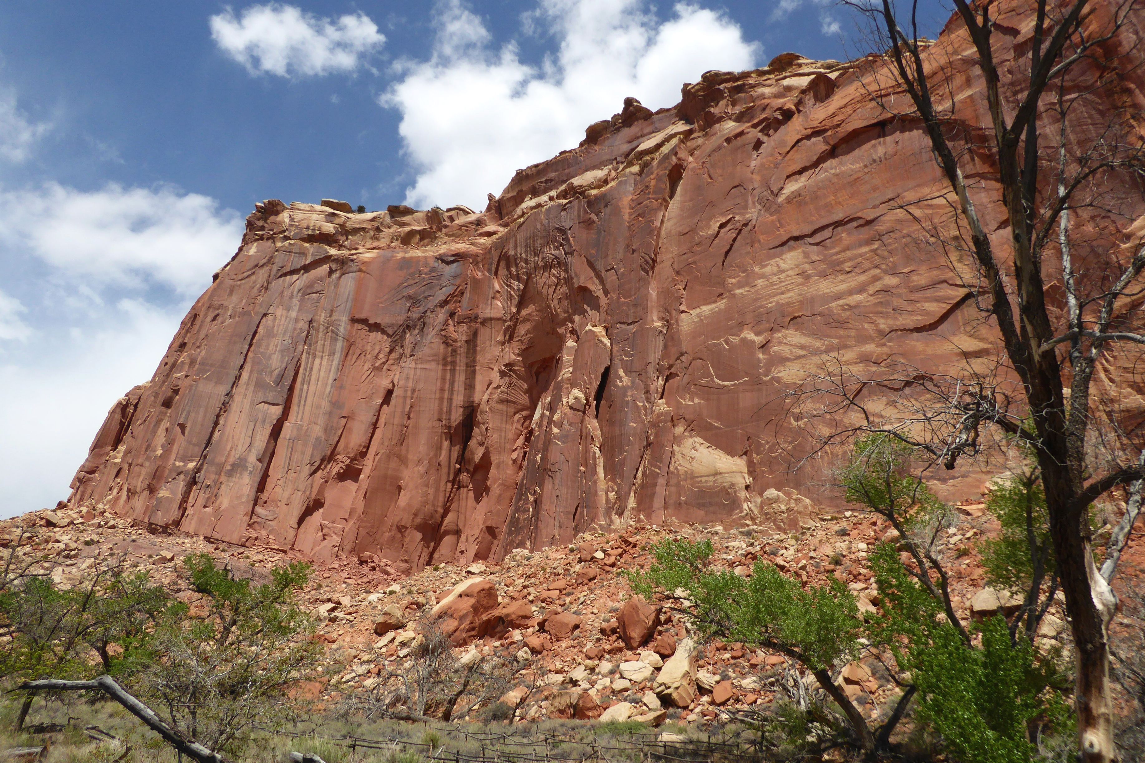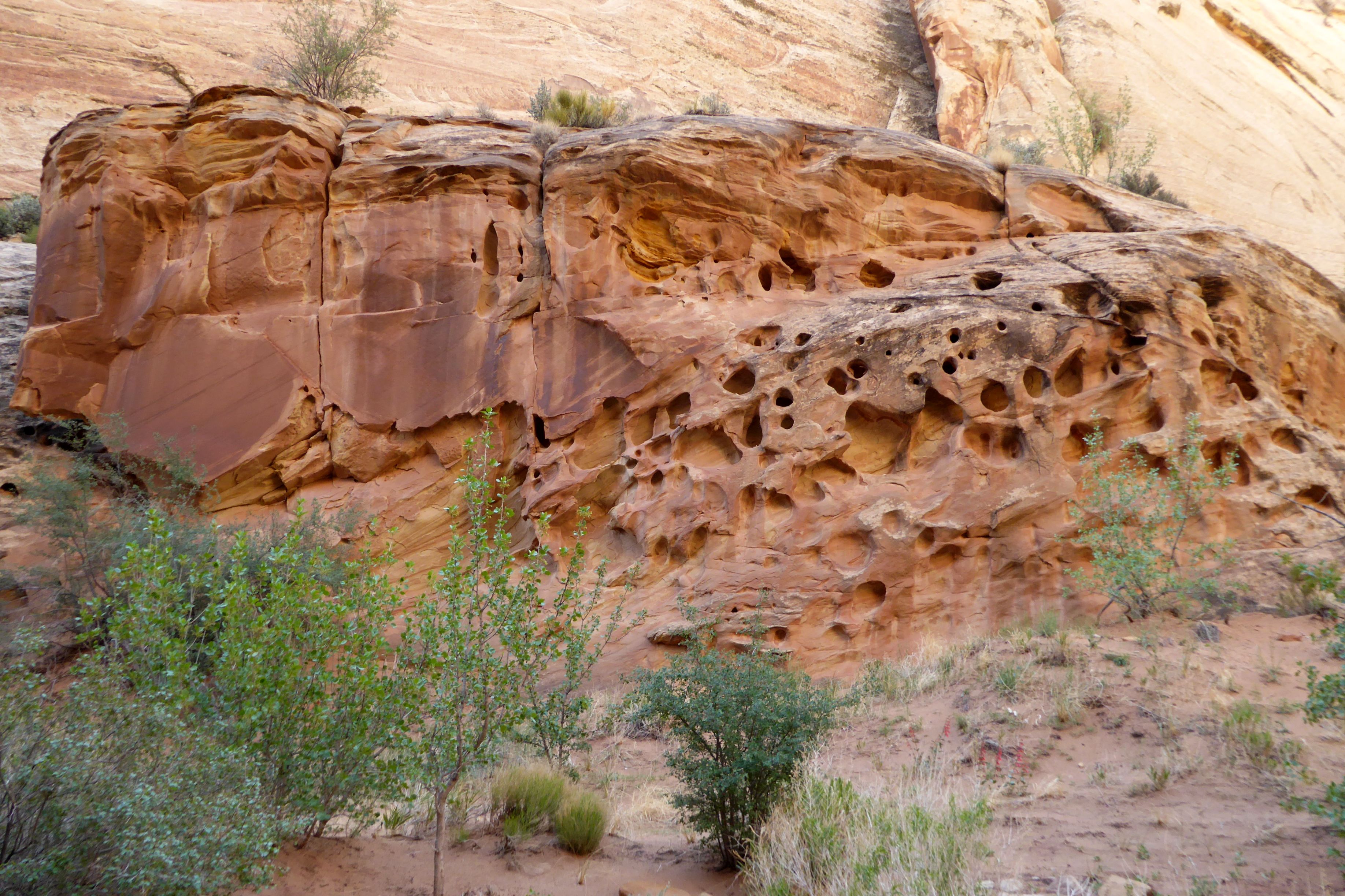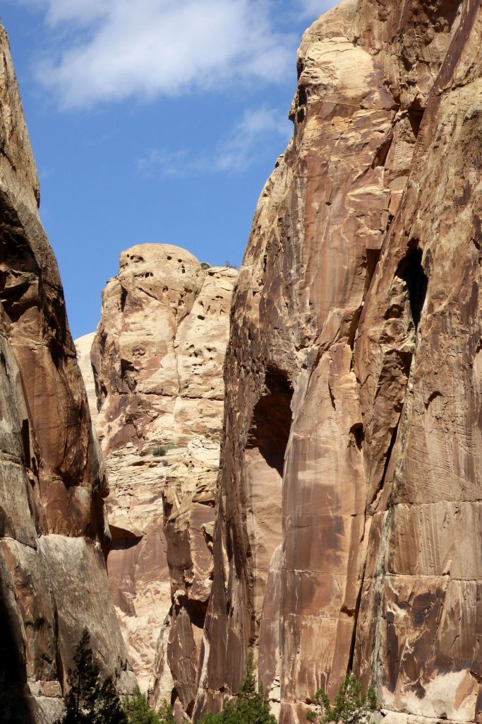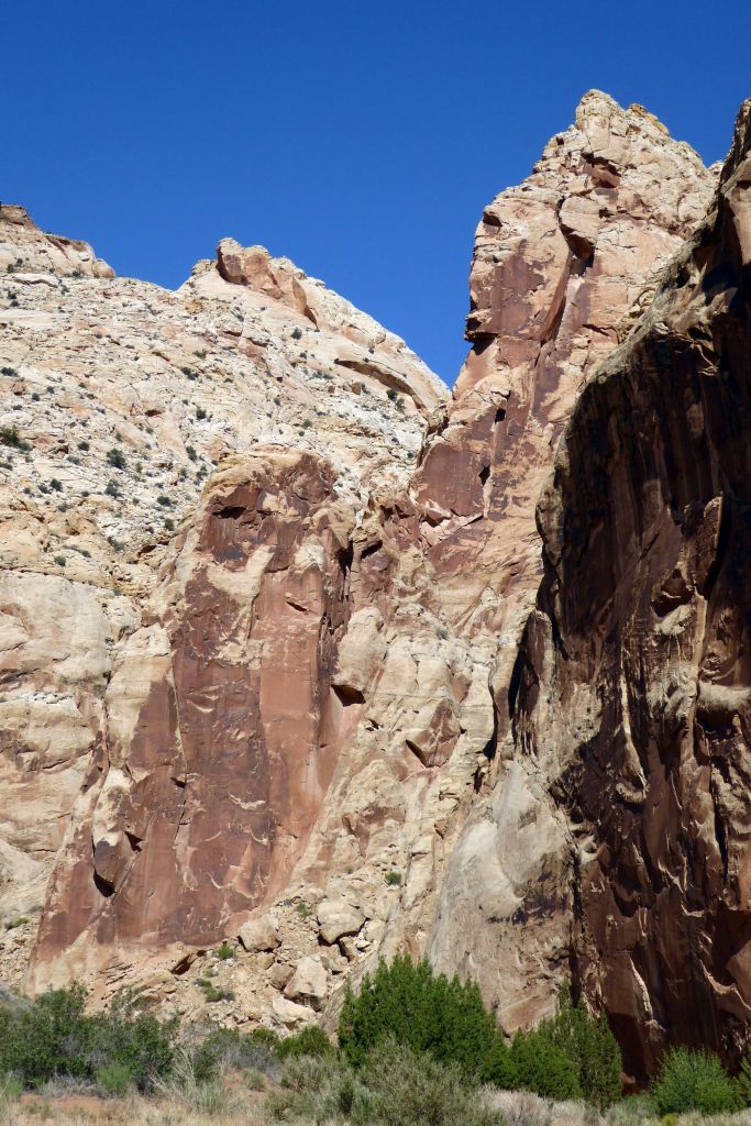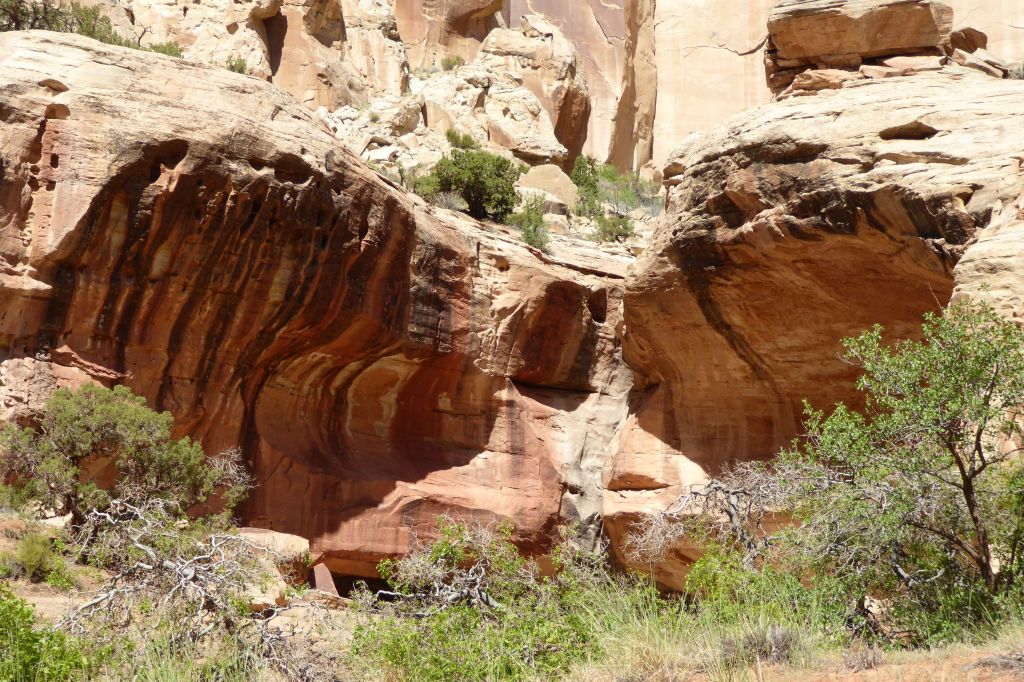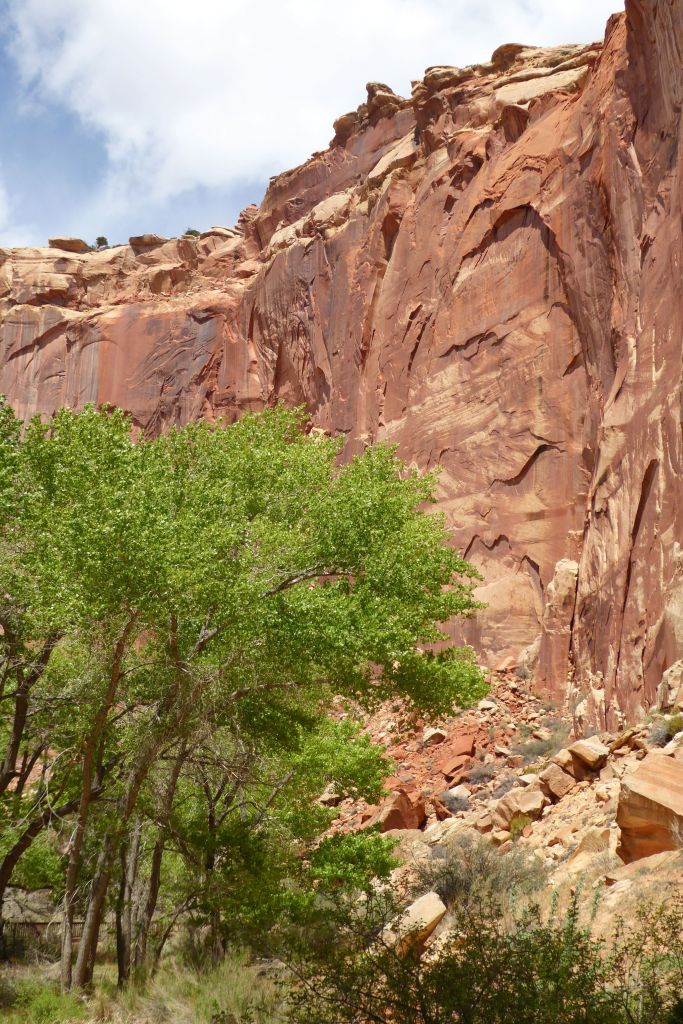 Following a morning greeting (and feeding) to my new friend in back of our hotel, we were off for an easy hike in Grand Wash at Capitol Reef National Park.  The gorge cuts through Waterpocket Fold, a nearly 100-mile-long fold in the Earth’s surface.  This uplift contains numerous eroded basins or pockets that hold rainwater and snowmelt.